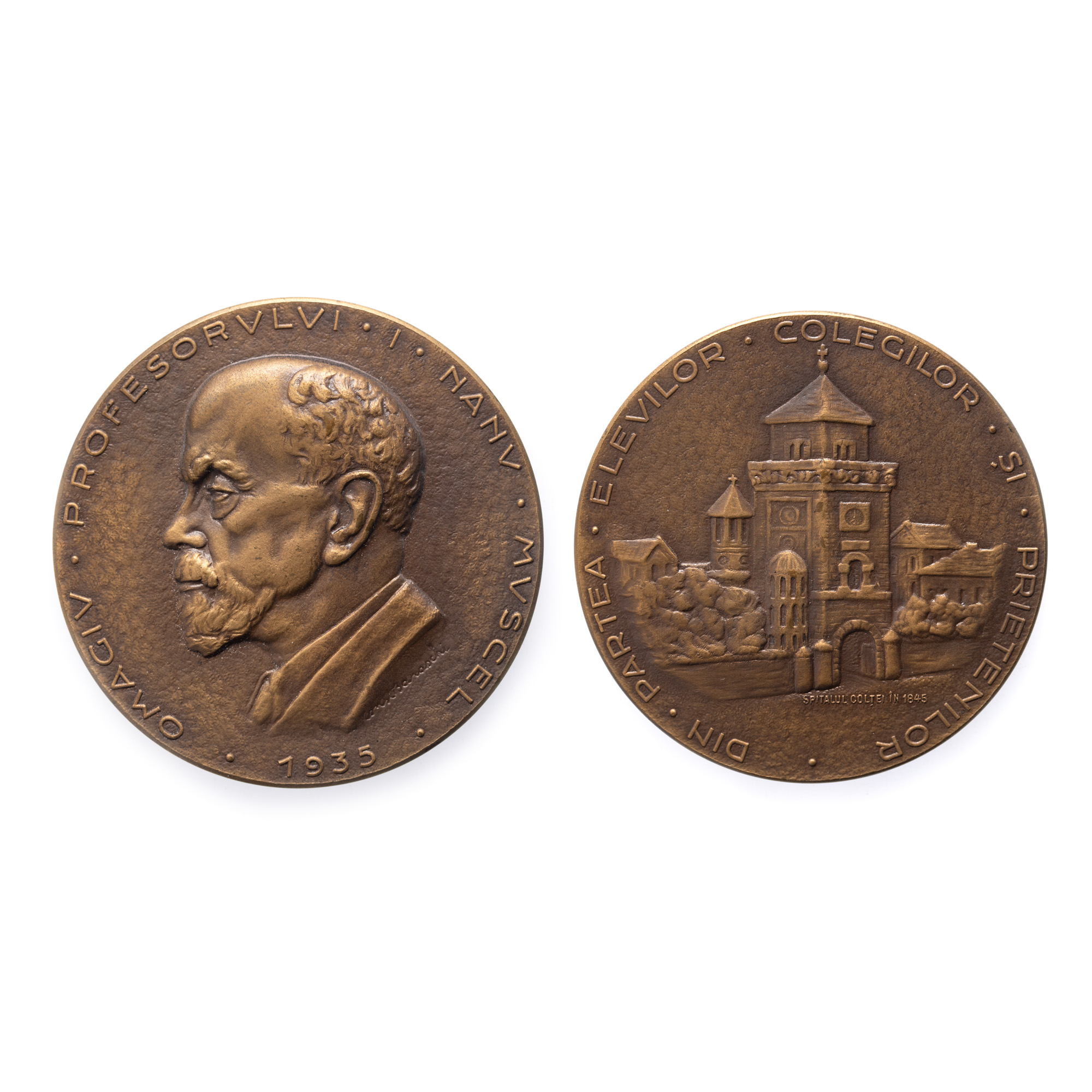114. Medalie ”Omagiu profesorului Nanu Muscel”, gravor Constantin Baraschi, 1935