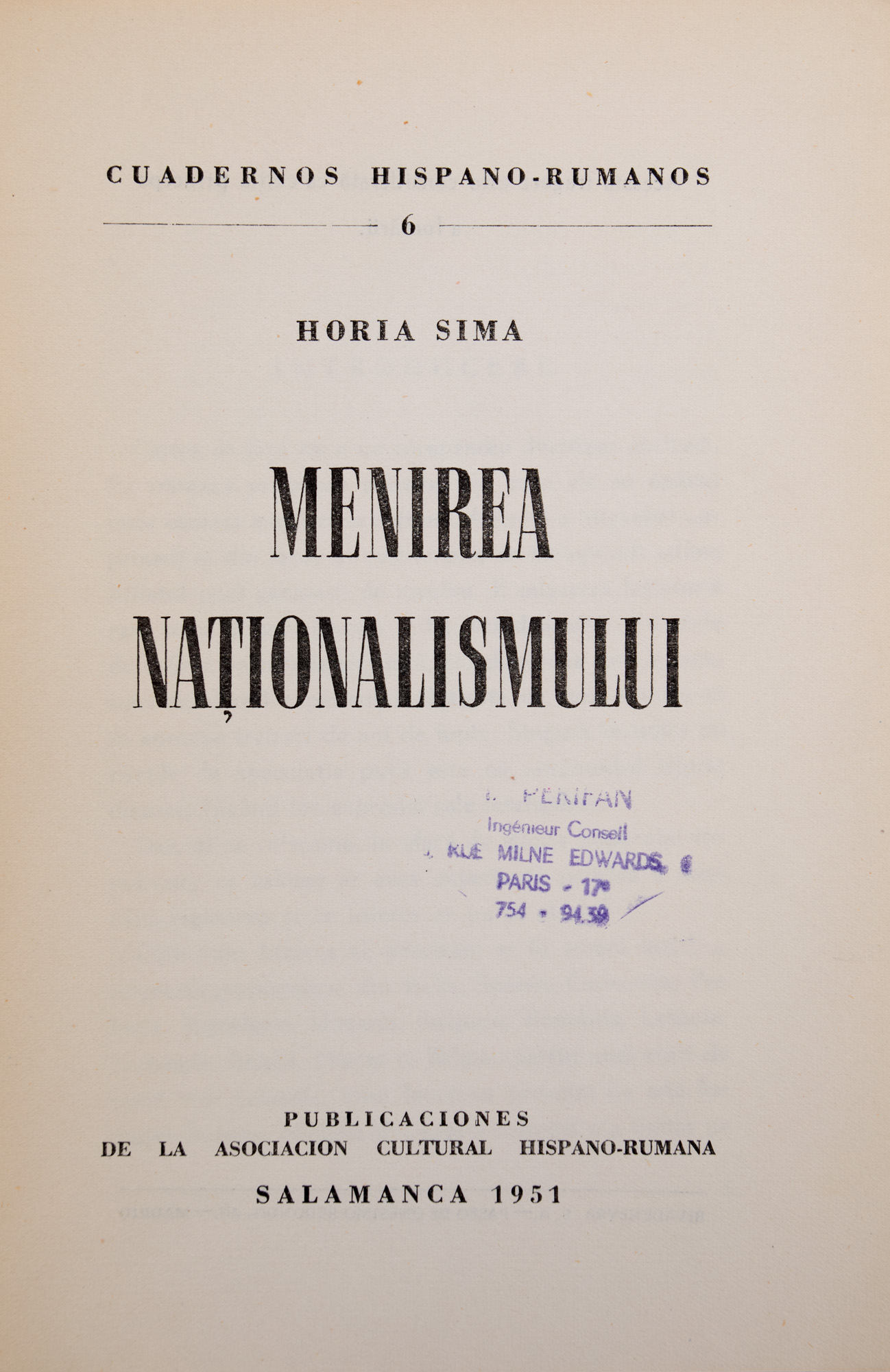 105IC. ”Menirea Naționalismului”, de Horia Sima, Salamanca, 1951