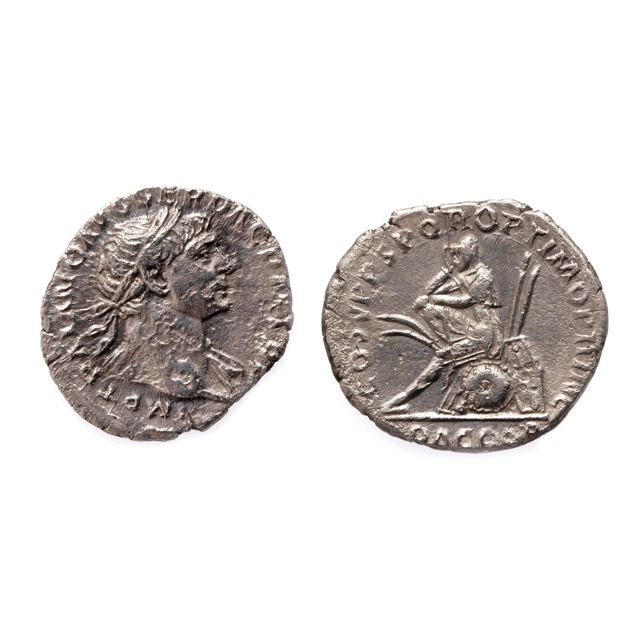 77F. Monedă Denarius, Traian, tip Dac Captiv, 107-108 e.n., argint