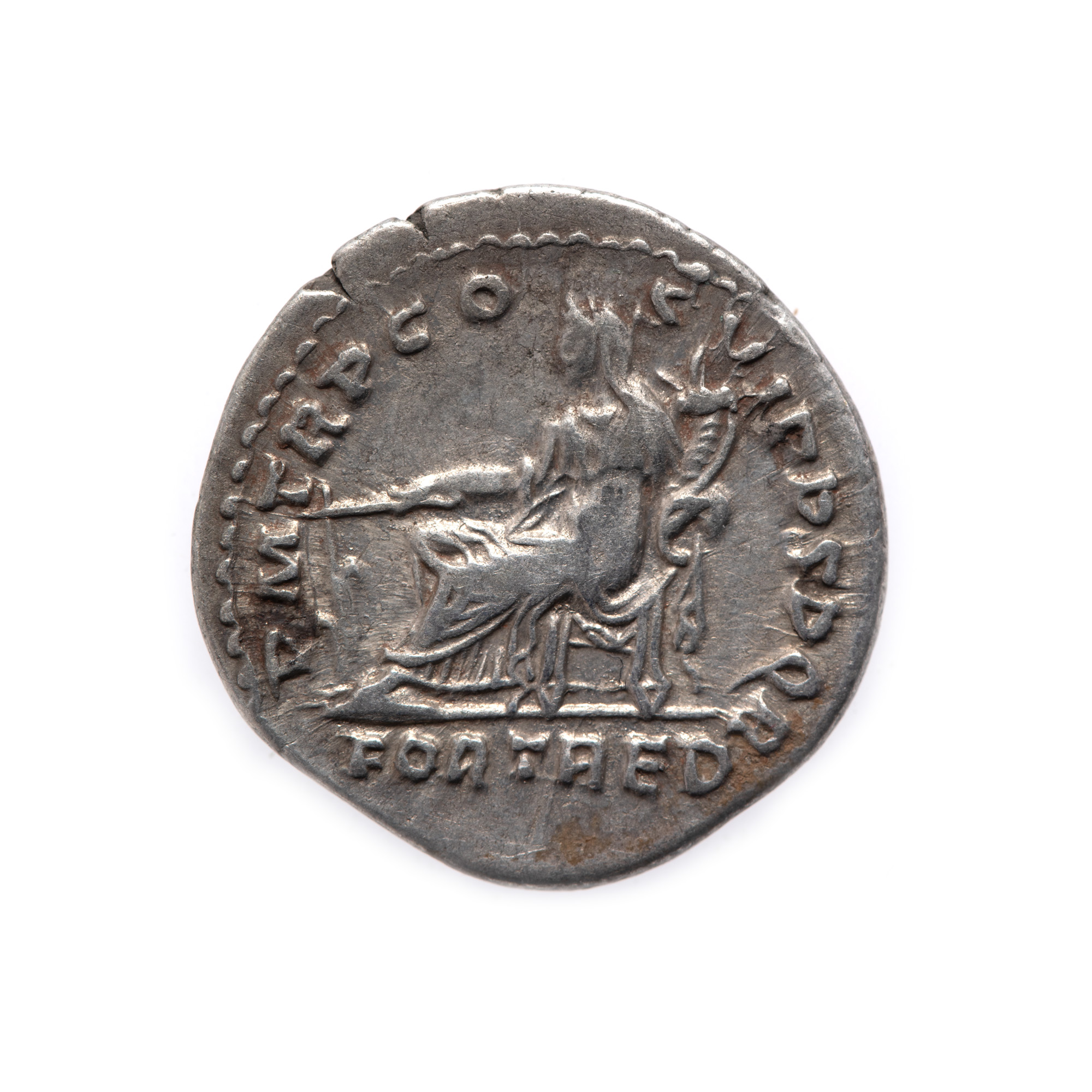 Legendă avers: "IMP CAES NER TRAIANO OPTIMO AVG GER DAC" Legendă revers: "P M TR P COS VI P P S P Q R FORT RED"
