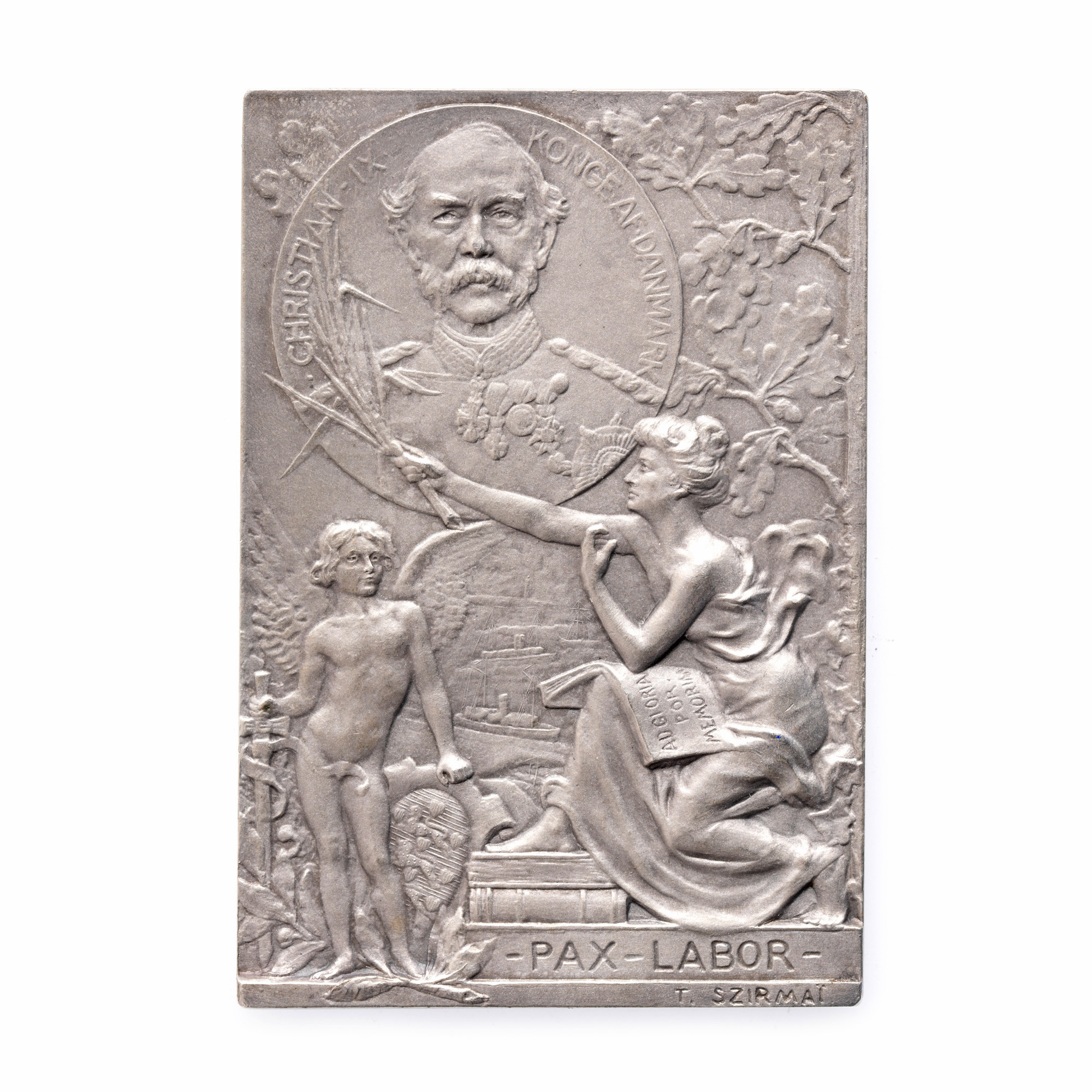 57. Plachetă Pax Labor, Regele Christian al IX-lea al Danemarcei, gravor Tony Szirmai, cca. 1900
