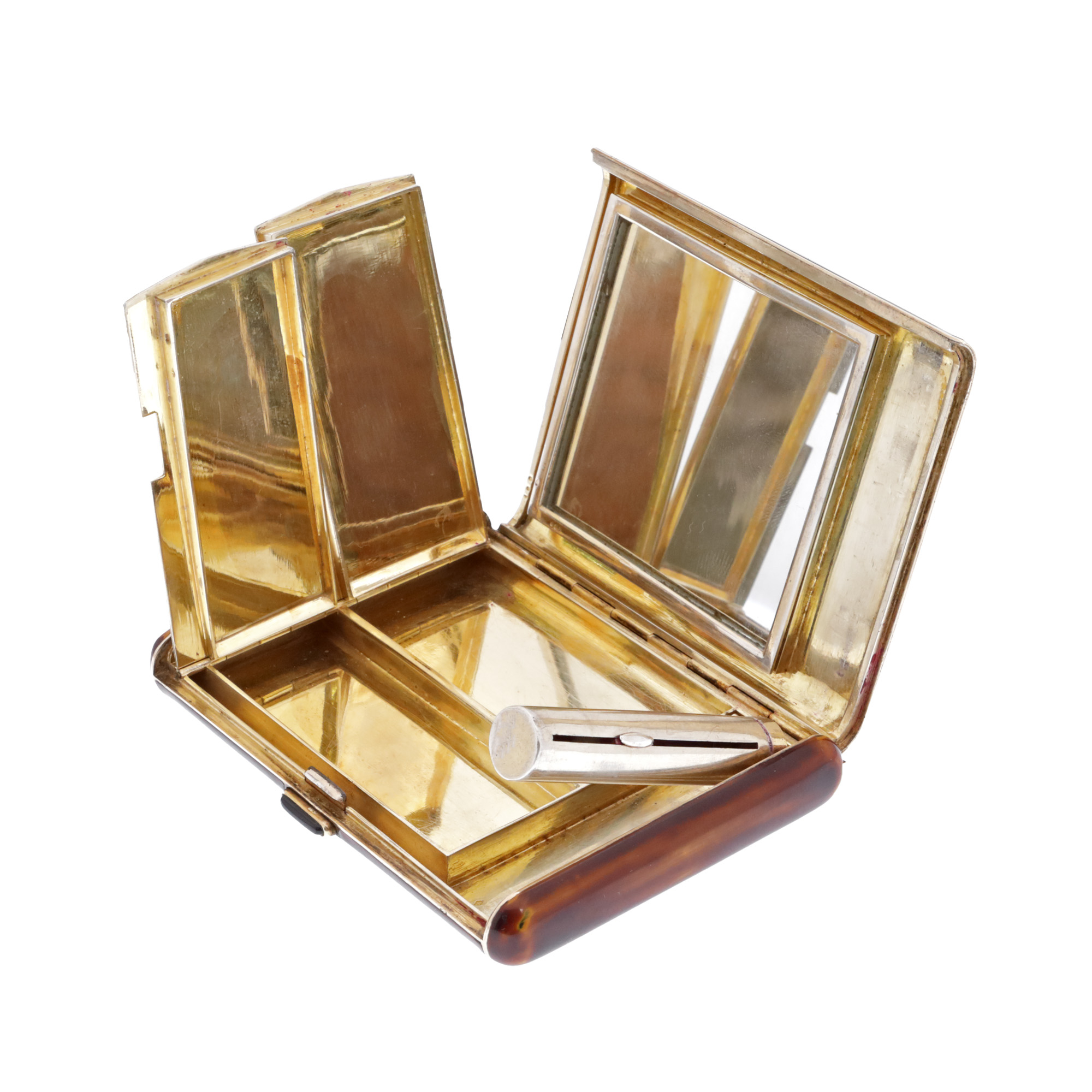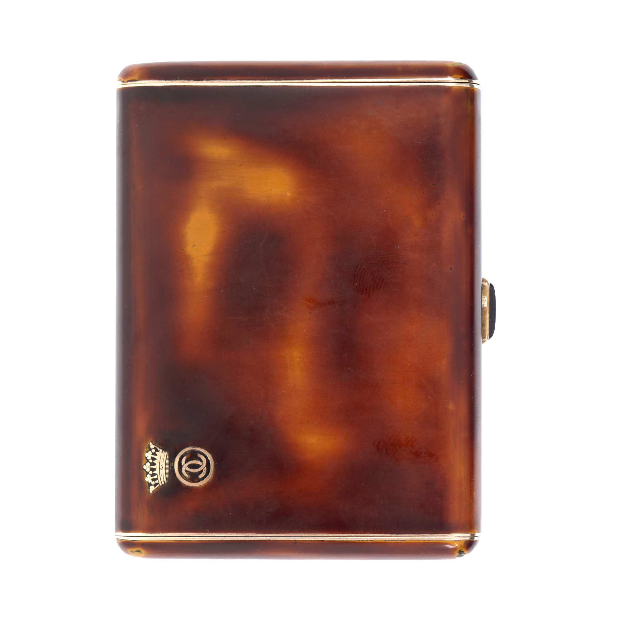 93. Pudrieră din aur, argint și baga, cu monograma Regelui Carol al II-lea, cca. 1930, cadou al regelui către Elena Lupescu, piesă unică, de colecție