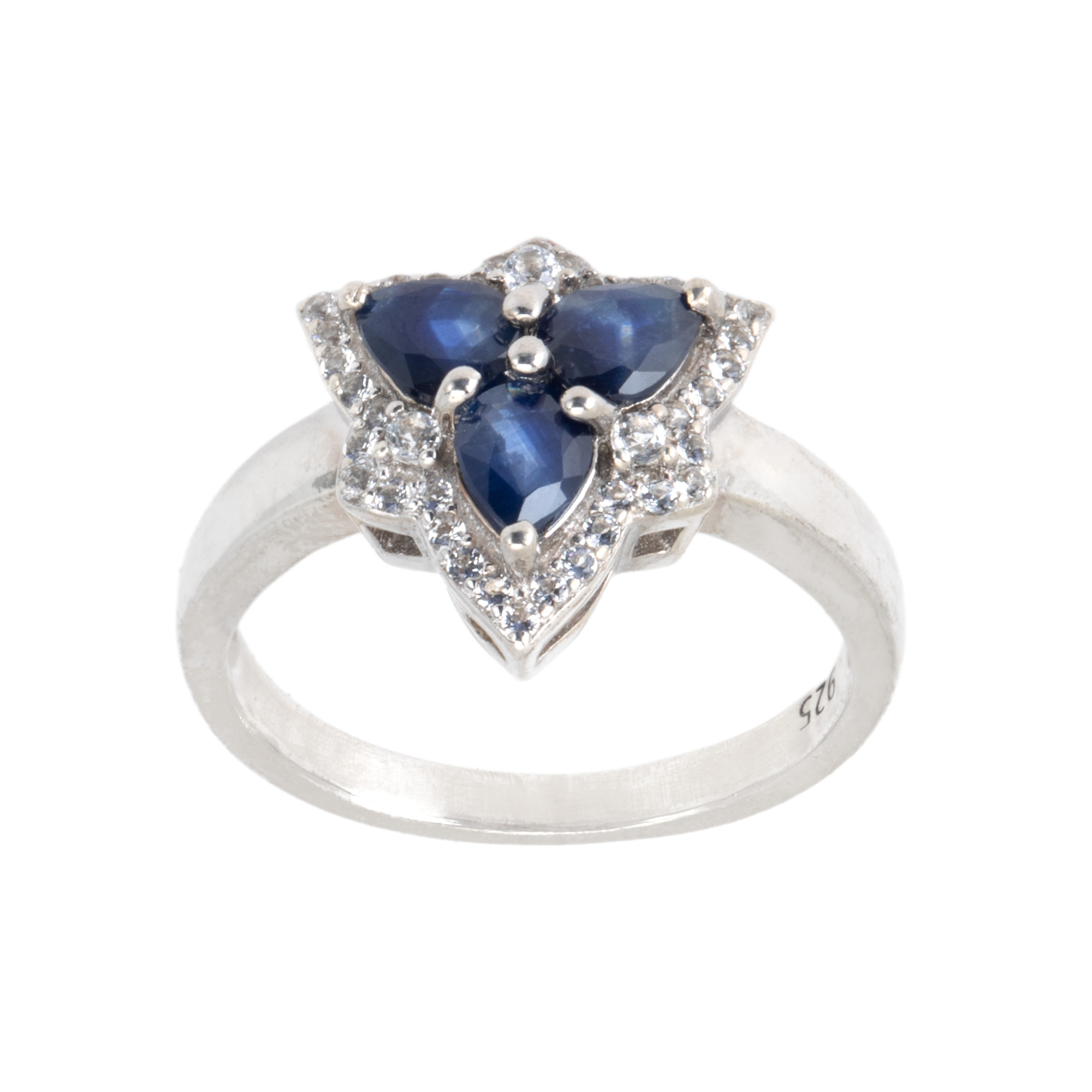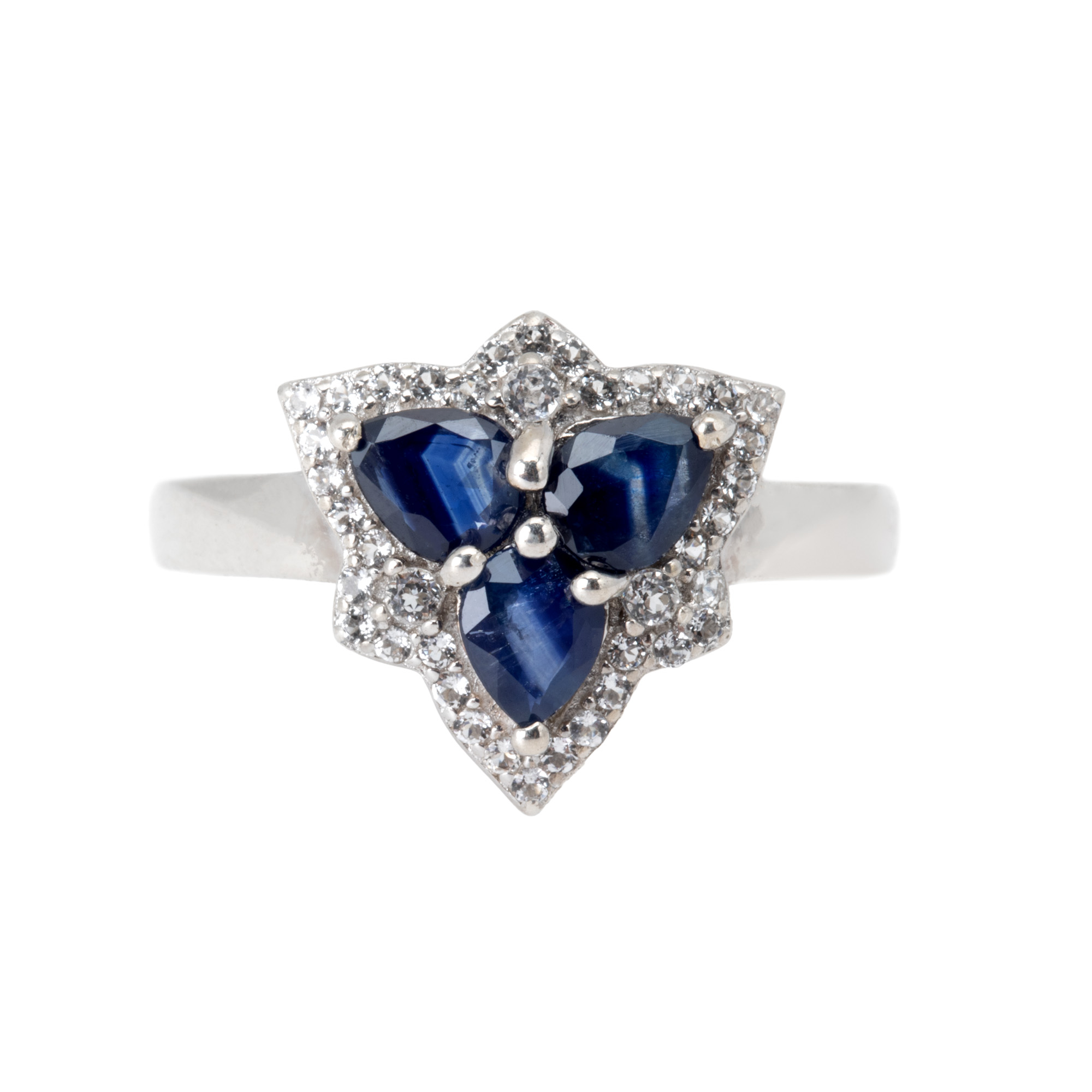 48. Inel din argint, decorat cu safire și topaze