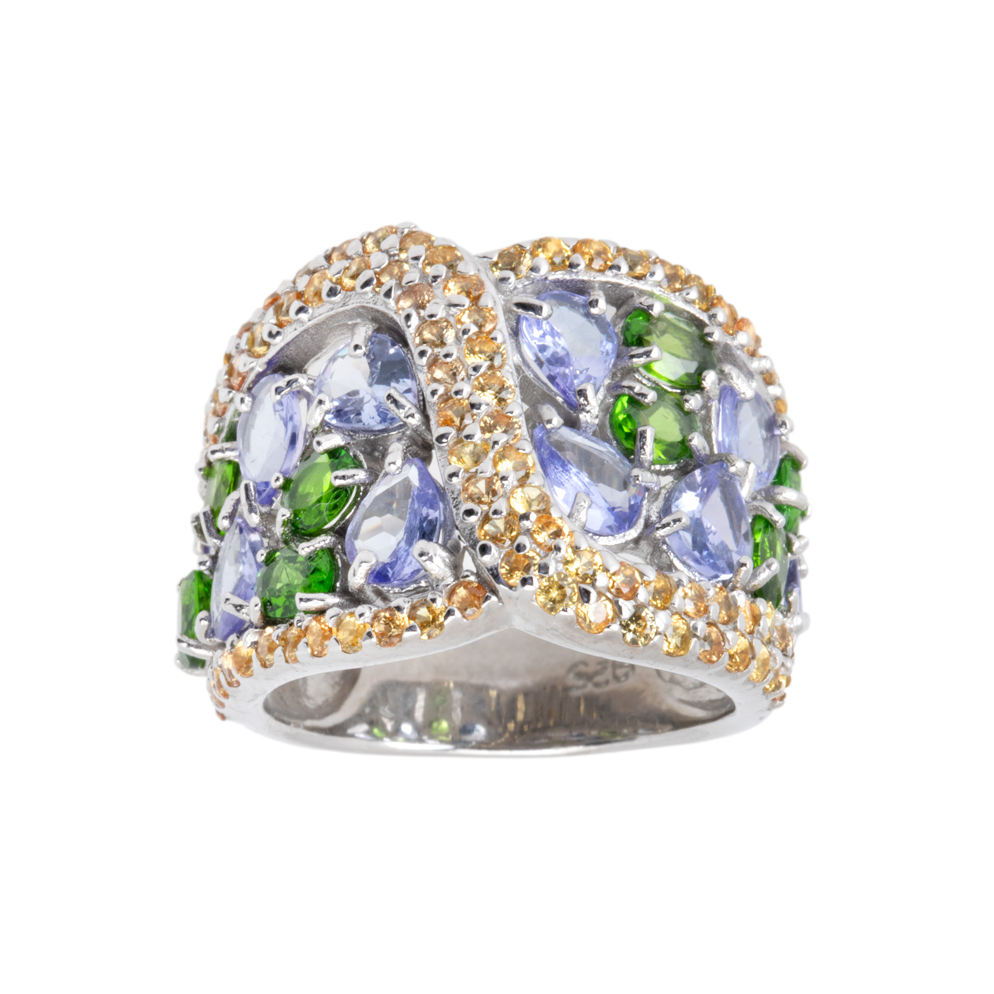 60. Inel din argint, decorat cu tanzanite, safire și cromdiopside