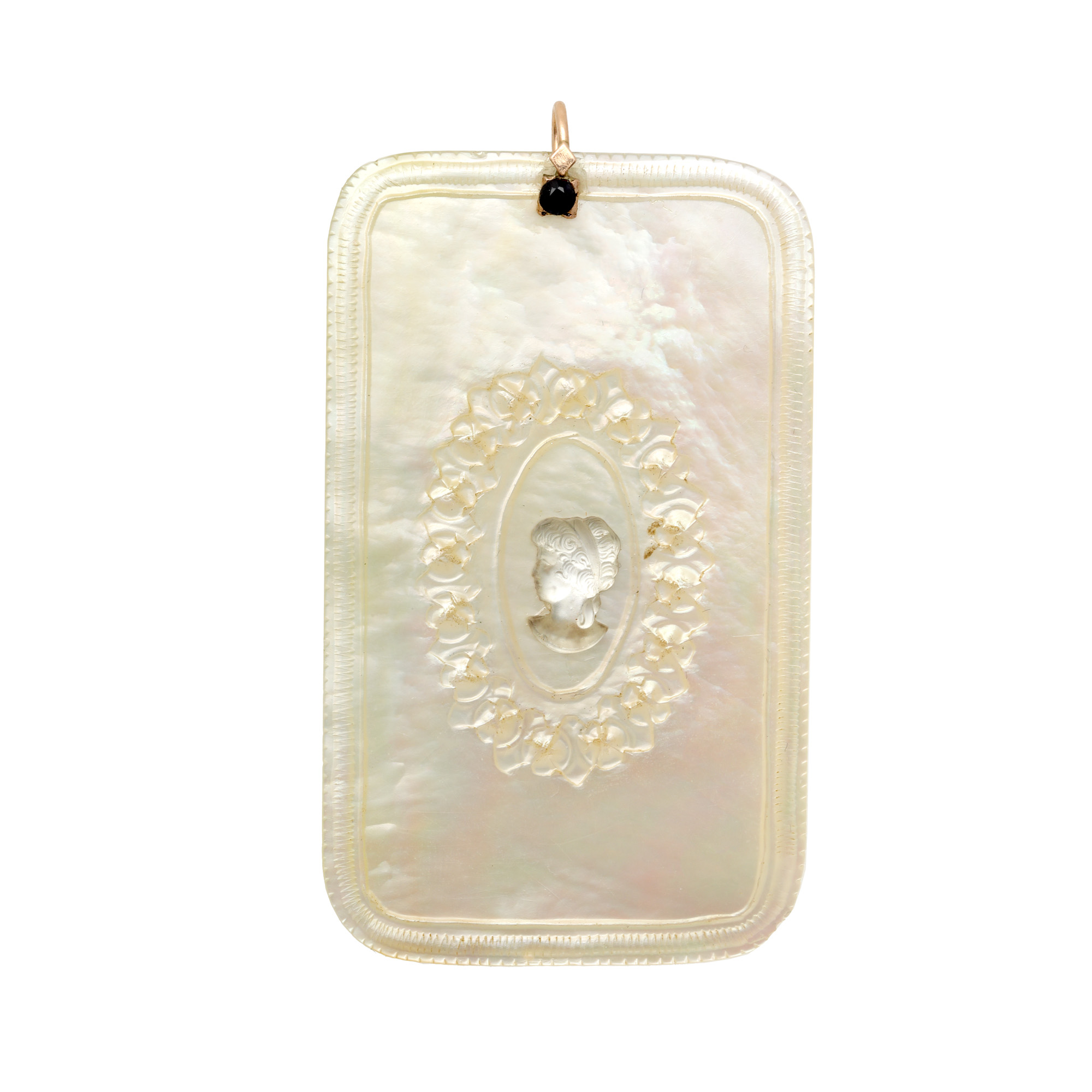 62. Pandantiv din sidef, decorat cu profil de femeie, prima jumătate a sec. XX