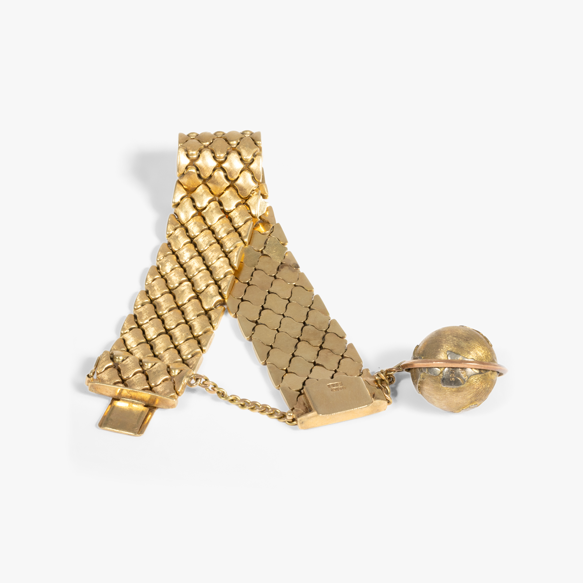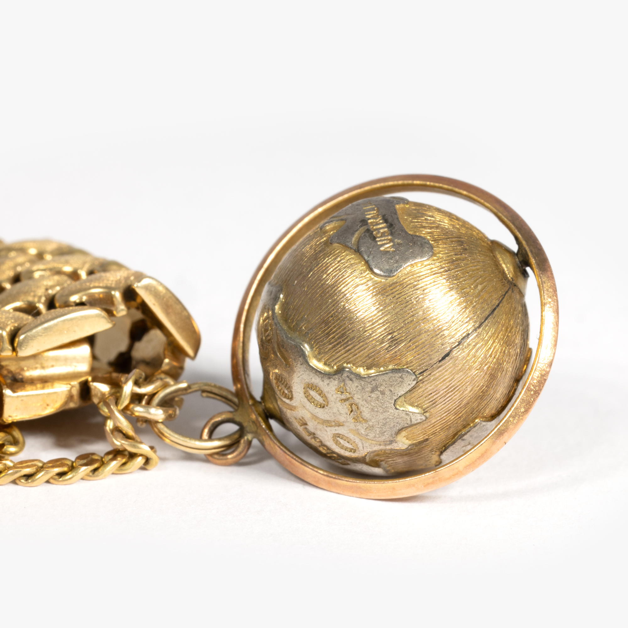 brăţara: aur galben 14 k; globul: aur galben 14 k şi argint 925