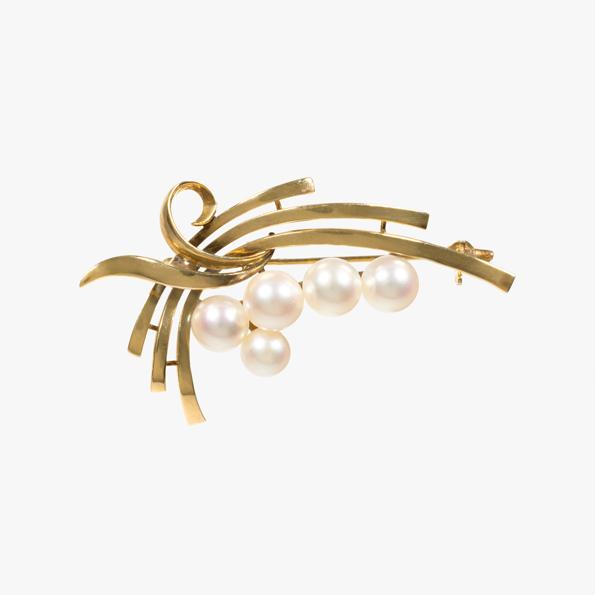 98. Broșă Mikimoto, din aur, decorată cu perle