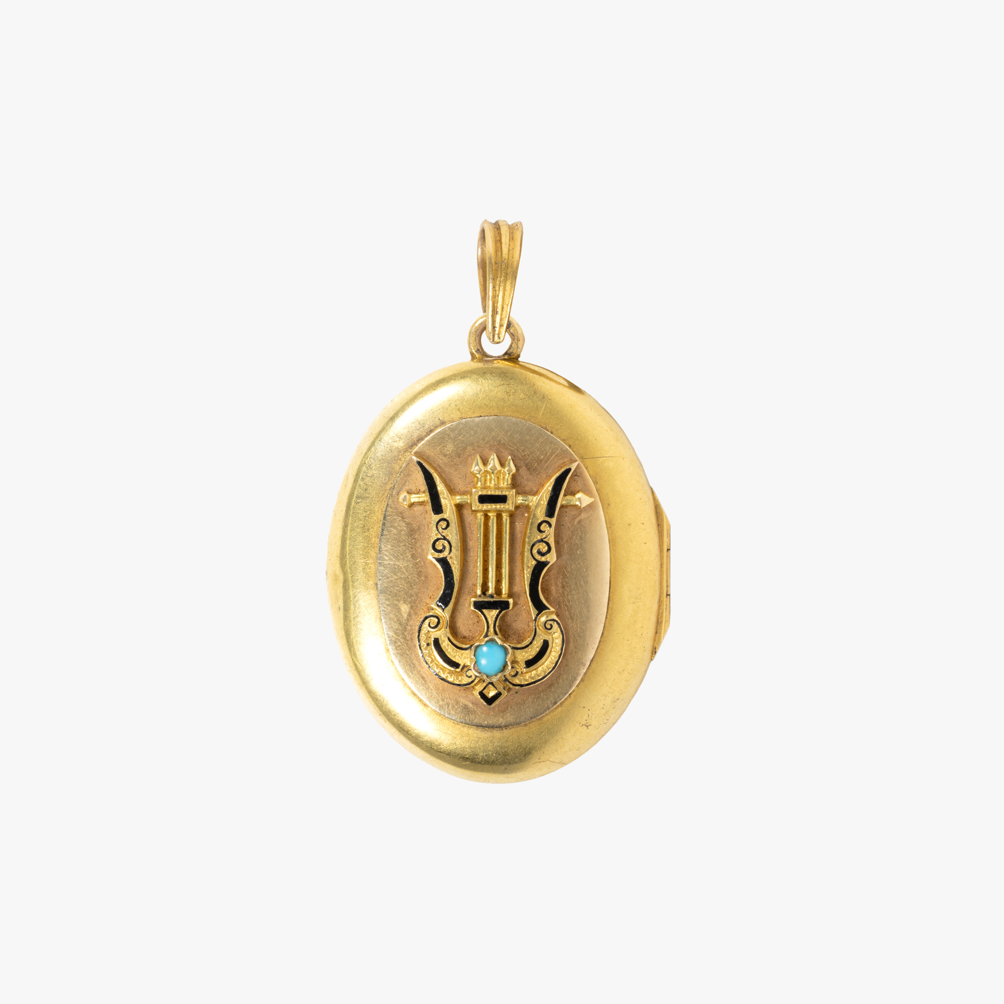 50. Medalion din aur, decorat cu liră, ornată cu un turcoaz