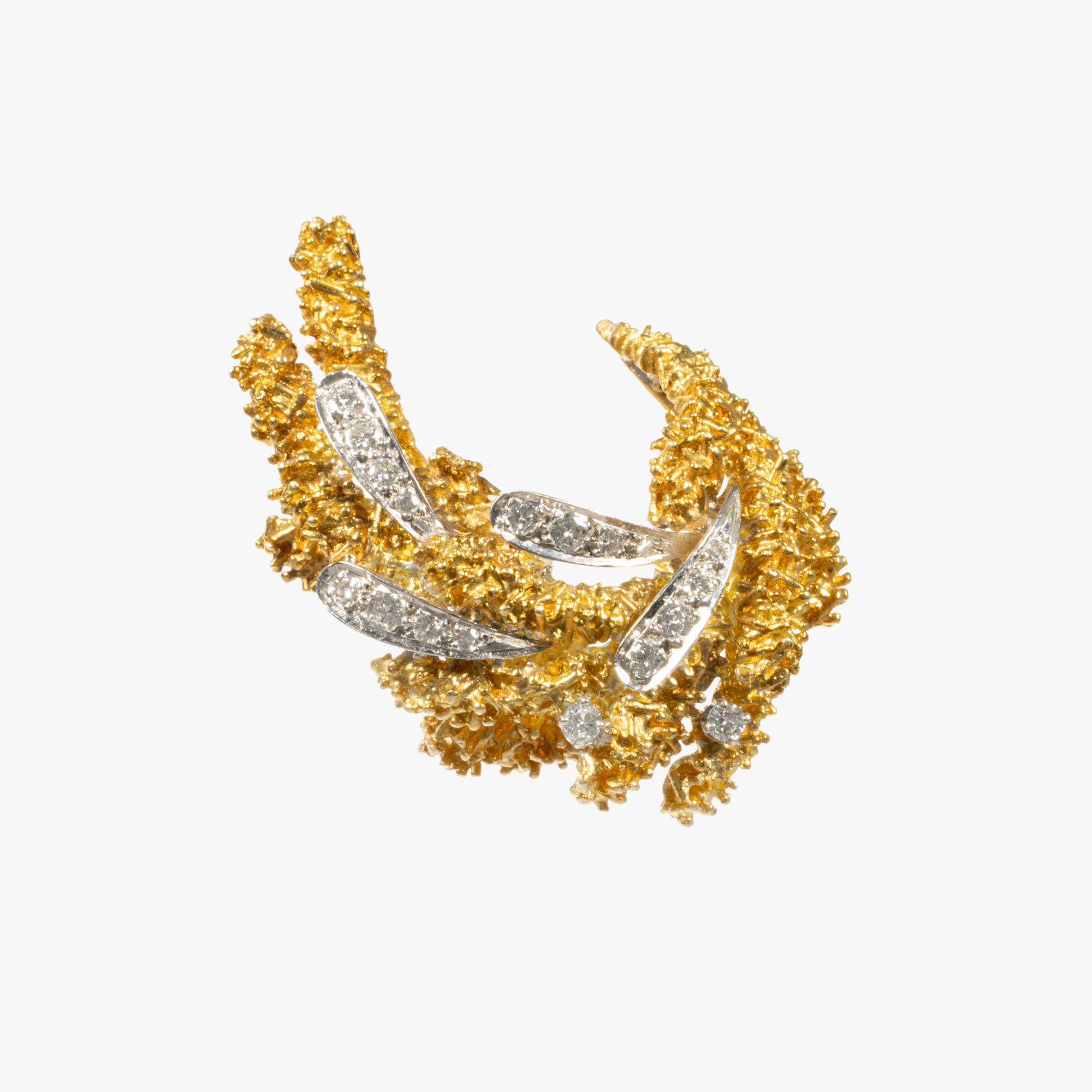 49. Impresionantă broșă din aur bicolor, decorată cu diamante
