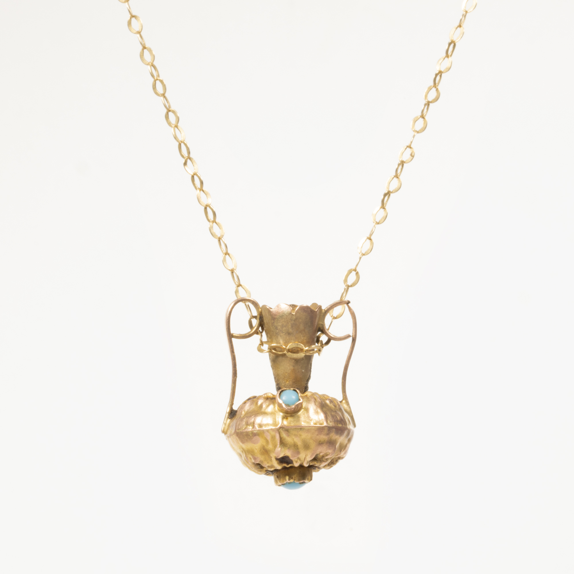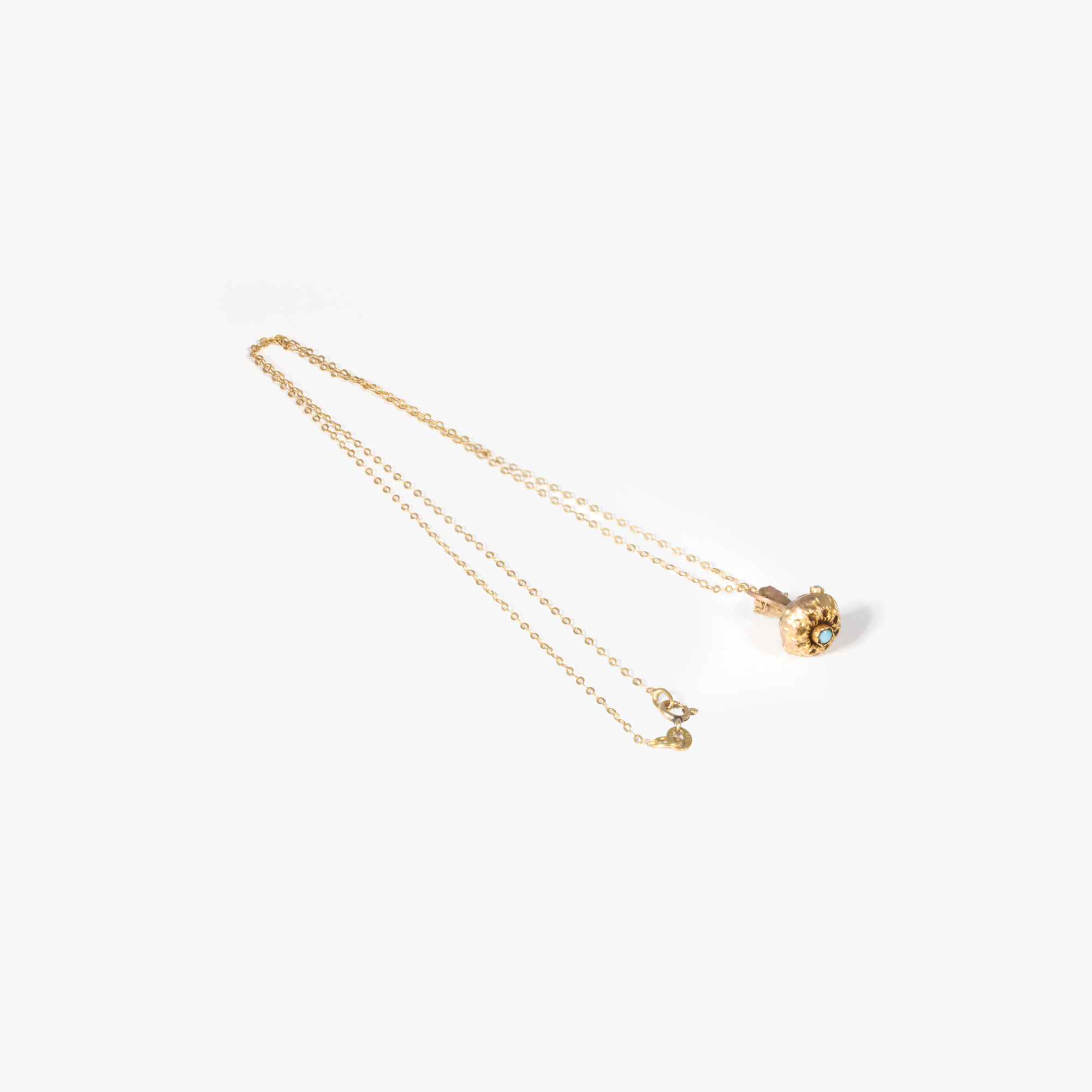 64. Lanț cu pandantiv din aur, decorat cu turcoaze