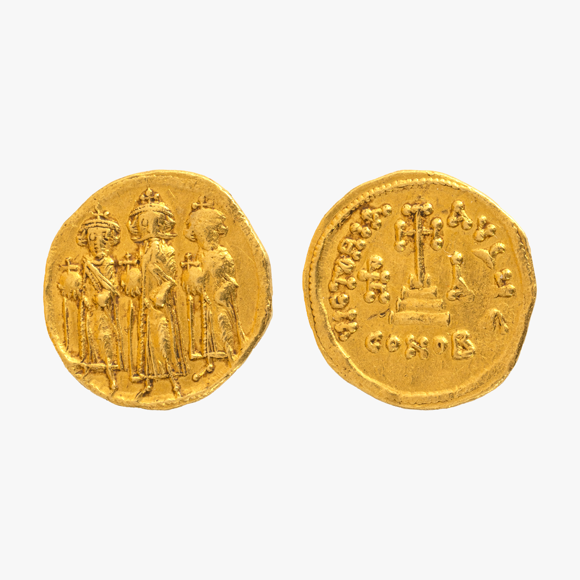 39C. Monedă Solidus, Heraclius, Imperiul Bizantin, 637–638 e.n., aur, cu certificat