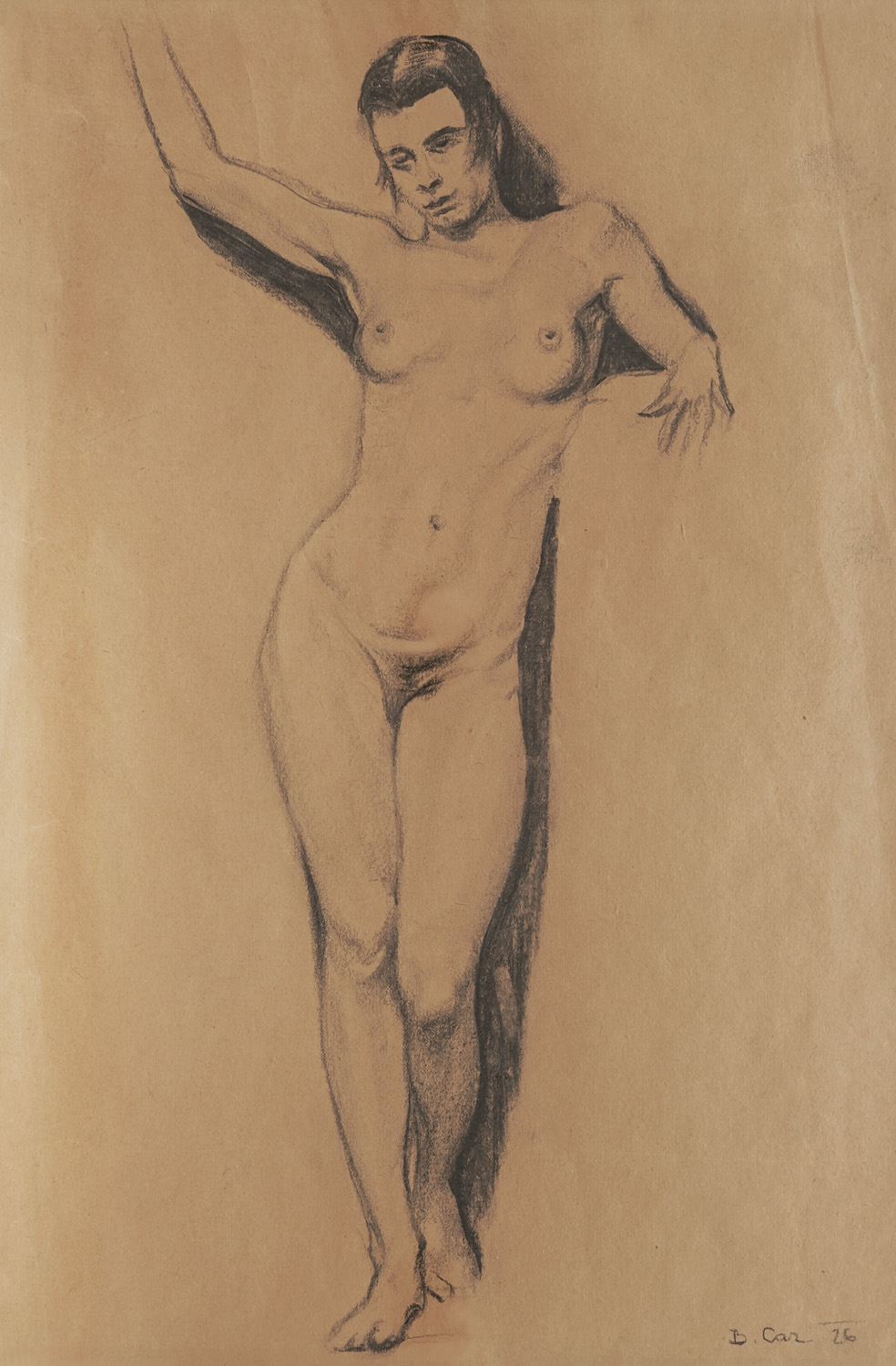 signed bottom right, charcoal, ''B. Car (19)26''
