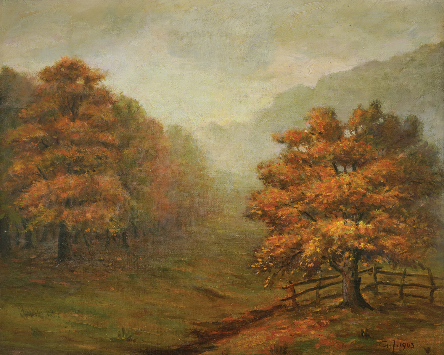 signed with initials and dated lower right, in black, ''G. J. 1943.''