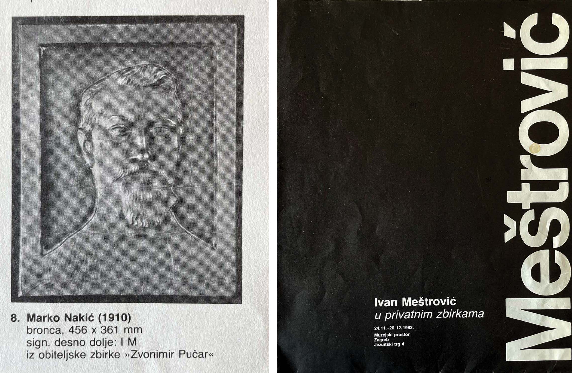The work is listed in the monograph "Ivan Meštrović", Ana Adamec, Gallery of Serbian Science and Arts, Belgrade, 1983, as a version of the memorial plaque titled "Portrait of Marko Nakić", on page 77, under cat. no. 216. The relief was exhibited at the "Ivan Meštrović in Private Collections" exhibition, 24.11. - 20.12.1983, Museum Space, Zagreb and reproduced in the exhibition brochure under cat. no. 8.