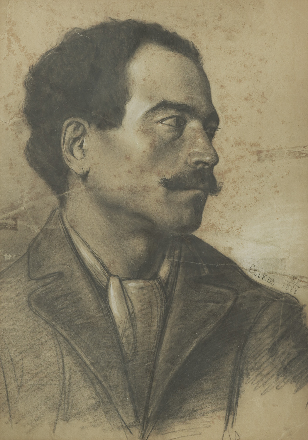 Čikoš or Csikos, as the painter signed his works, painted his self-portrait in Vienna in his second year of painting studies that began in 1887 at the Academy for Fine Arts. The then Academy's curriculum included a provision that each candidate must undergo systematic training in a general painting school (Allgemeine Malerschule) which lasted three years. Only after mastering the basics, only talented students could continue their studies in specialized classes for historical, landscape or animalistic painting. Čikoš, of course, belonged to those talented for painting, so as a mature young man with twenty-six years of life - after three years of feverish work, practice, and gaining precision in observation, and even reproducing what he saw - he continued his studies in a specialty for historical painting. He graduated in 1891 in the class of Professor Leopold Karl Müller. In this self-portrait, the external contour of the volume is fixed with a clean outline, and full plasticity of the figure, bust, and clothing he wears is achieved by precisely adding slight whites to the most prominent parts of the face. In addition, the density of lines expressed here, careful shading and variation of the intensity of shading clearly indicate Čikoš's exceptional drawing skill, his impeccable modeling and the power of individual characterization which far exceed the quality level of the academic drawings of then students of the Vienna Academy. That Čikoš was counted among the most prominent students of his generation at the Vienna Academy and that he excelled with his artistic achievements is also confirmed by the Golden Füger Medal he received in 1891 at the exhibition of student works for the drawing composition "General Flood" and the oil painting "The Old Man", today in the permanent exhibition of the National Museum of Modern Art in Zagreb. After finishing his studies, Čikoš returned to Zagreb in 1892, where he immediately joined the masters of Croatian fine arts modern (Vlaho Bukovac and Mate C. Medović) in painting the walls of the upper town palace of the Department for Worship and Teaching (today's Croatian Institute for History). The commissioner of the artistic renovation of the palace was personally the head of the Department Izidor Kršnjavi who when it comes to Čikoš did not stop at this first order, but also arranged for the painter a multi-month study stay in Italy after which followed the most fruitful period of Čikoš's creativity which since then is embodied more by painting than by drawing features. BRP