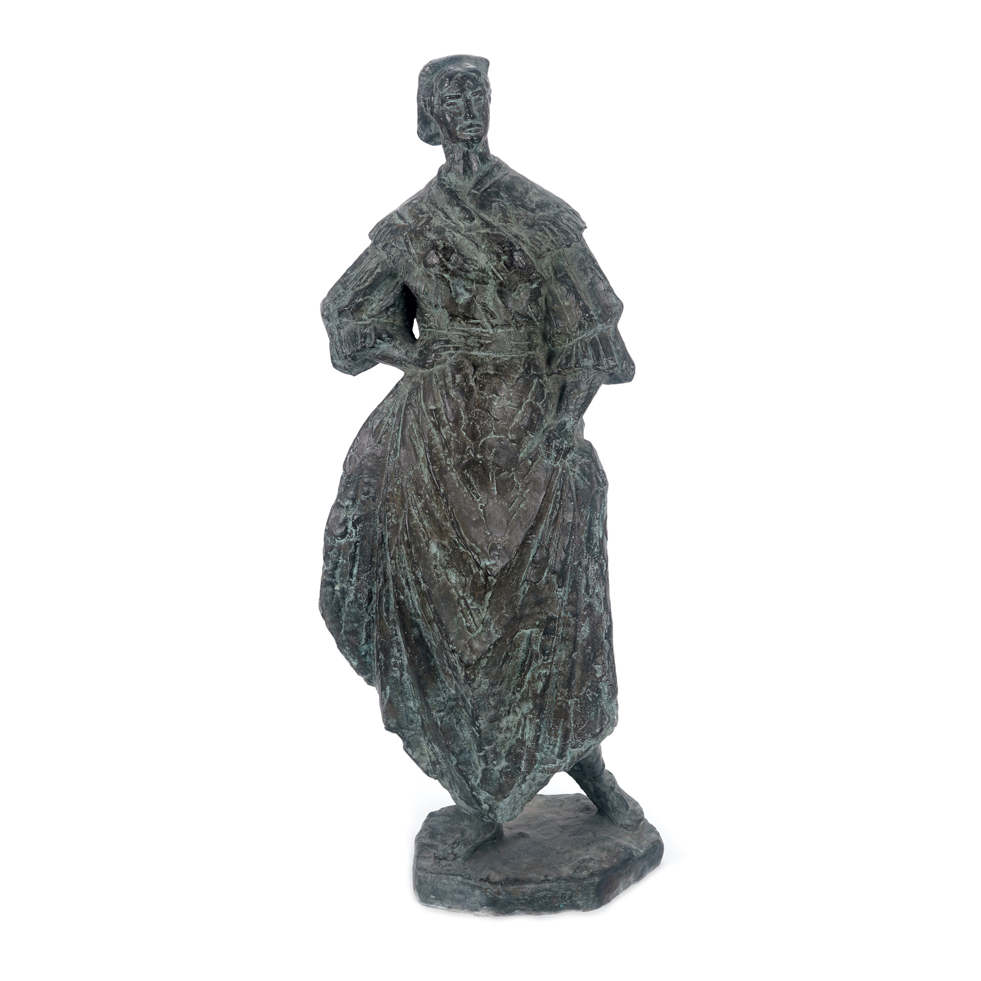 Vanja Radauš (Vinkovci, 1906. – Zagreb, 1975.) was a Croatian sculptor, painter, and novelist. As a boy, he came into contact with blacksmiths, which left a mark on his life. He studied sculpture at the Academy in Zagreb in the class of Ivan Meštrović and after graduating he went to Paris for further training. He taught at the State Trade School in Zagreb and was also a regular professor at the Zagreb Academy of Fine Arts. His work was influenced by Rodin and Bourdelle. He was a member of the Earth group. His sculptural work stands out in several cycles – the “Typhus” in monumental expressionistic expression of physical deformations, “Panopticum croaticum” in which he depicts the tragic destinies of Croatian historical figures. He also made a cycle of drawings inspired by the Spanish Civil War. His oeuvre thus includes sculptural, painting, graphic cycles, several collections of poems and a large number of photographs. During the Second World War, he joined the partisans and returned from the war with many works of art. He designed the coat of arms of the People's Republic of Croatia in 1947. The expressive sculpture called “Jamničarka” is typical of Radauš. It is robust in volume and has a pronounced texture. The surface is uneven, contributing to the drama. In bronze, he portrayed a proud female figure in folk costume. The sculpture exudes determination and resilience, her hands are placed on her hips, and her face has a serious expression.
