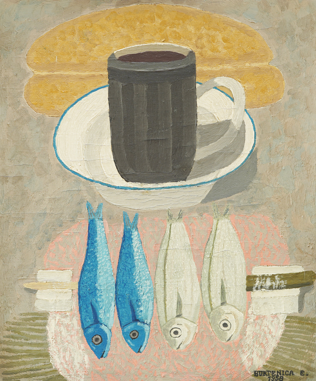 signed and dated lower left, in black, ''BUKTENICA E. 1958''
