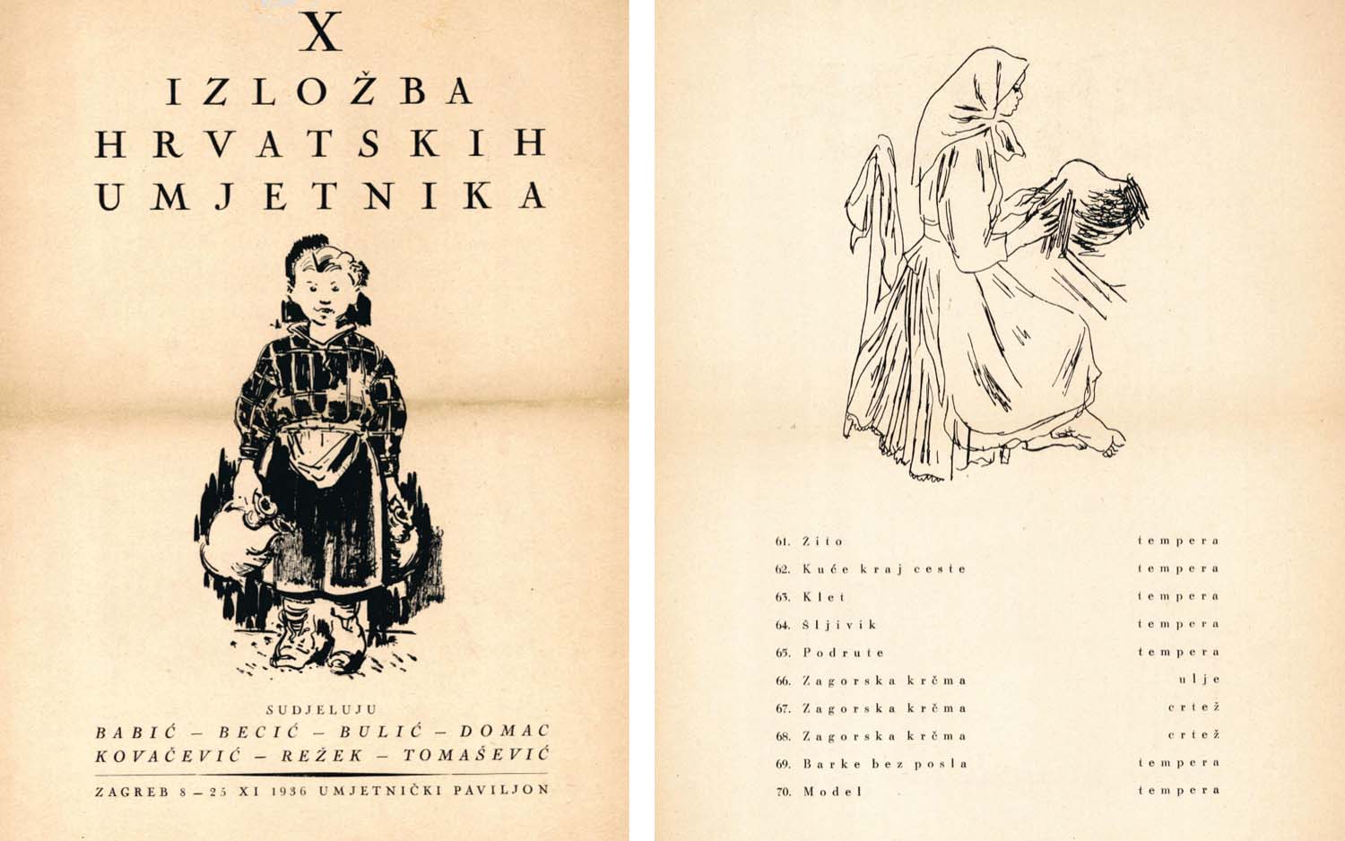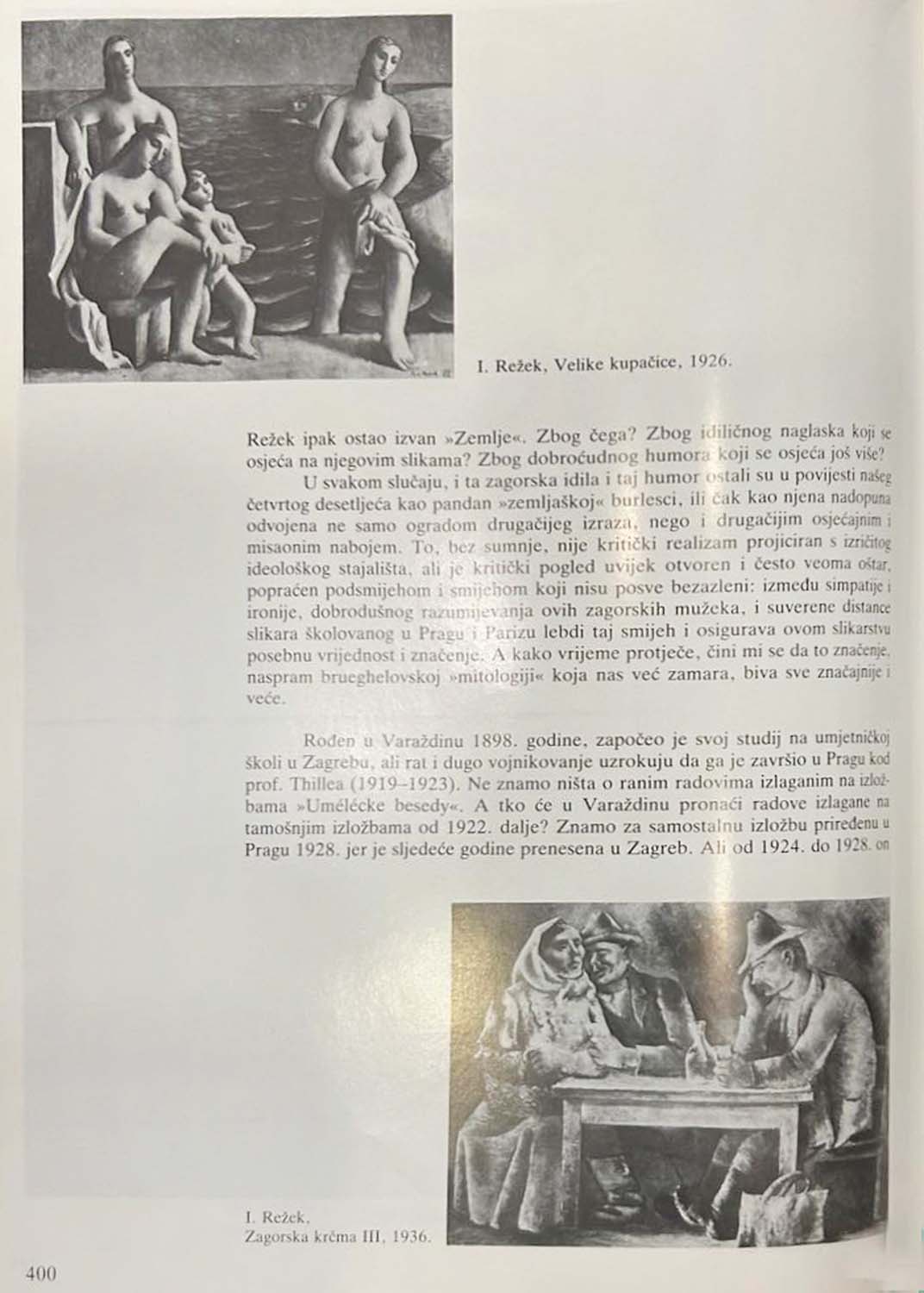 In 1936, Ivo Režek participated in the 10th exhibition of Croatian artists from November 8 to 25, 1936, at the Art Pavilion, along with Ljubo Babić, Vladimir Becić, and Bruno Bulić. He exhibited three works entitled "Zagorska Krčma" (Tavern in Zagorje), one oil painting and two drawings; the offered oil painting is most likely the one he exhibited at the time as Režek's 10th artistic piece at the exhibition, with the label still visible on the back of the painting. Previously, the painting was owned by Natalija Matovinović, born Gottlieb, who comes from a prestigious Zagreb medical family rooted in high society. Her father, Antun Gottlieb, was a renowned surgeon and head of surgery at Vinogradska hospital, while her grandfather Albert Gottlieb, also a doctor, was the first doctor in Vukovar. When she was two years old, Natalija posed for painter Ljubo Babić, and eight years later for Ivo Režek, in her grandfather Albert's arms. Oskar Herman painted Albert Gottlieb, as well as other members of the family. These works, among a total of 22 paintings, were donated to HAZU in 2013 as part of the "Antun and Anka Gottlieb Collection.” The collection includes works by Ljubo Babić, Oskar Herman, Vilim Svećnjak, Ivan Tišov, Menci Klement Crnčić, Ferdo Kovačević, and Ivo Režek. The piece is reproduced in the book "Croatian Painting of the XX. Century", volume one, Grgo Gamulin, Naprijed, Zagreb, 1997., under the title "Tavern in Zagorje III.", 1936., on page 400.