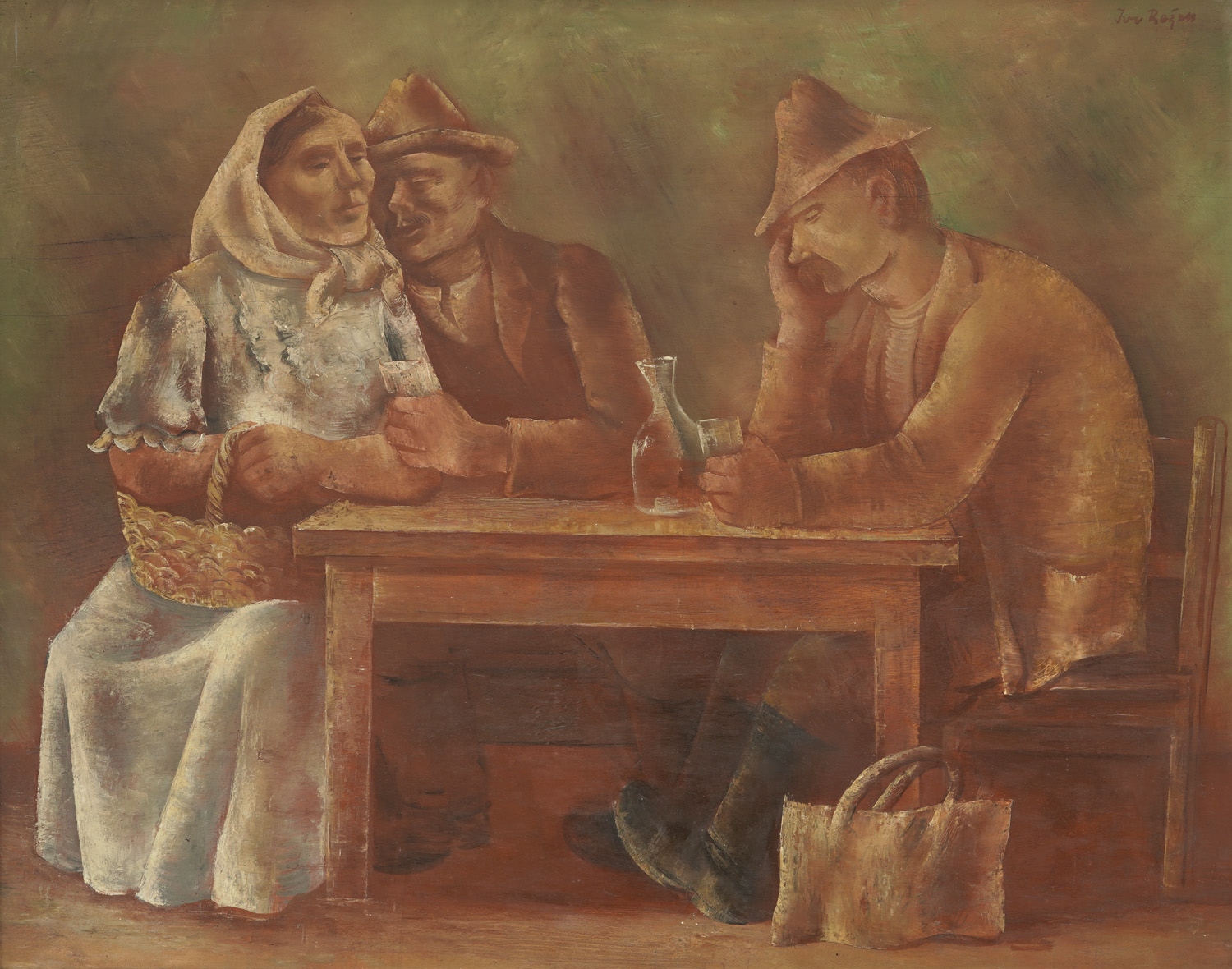 This version of "Tavern in Zagorje" was painted by Režek after he permanently settled in Zagreb in 1931. His return to his homeland after more than two decades of absence – first due to painting studies at the Academy in Prague (1918-1924), then further education in Paris with André Derain (1925-1927) and finally due to studying fresco technique with Marcel Lenoir (1928-1930) – also meant a dramatic turn in his painting. Proximity to Zagorje landscape and rural life in the vicinity of Zagreb and his native Varaždin encouraged him to paint landscapes and scenes from modest rural taverns which also led to stylistic transformations. From 1932 to 1938, he painted a number of landscape views with small houses covered with vines and several interiors of rural taverns where its everyday guests often doze off with a glass of wine. Two paintings, "Taverns in Zagorje," from 1938 are kept and exhibited at the National Museum of Modern Art in Zagreb. As for the stylistic changes, it should be noted that during the 1930s Režek completely abandoned the concept of the universalist line of European magical realism expressed in the portraits from the 1920s and that he freed himself from both stylistic and iconographic influences of Picasso which is significantly present in his Parisian paintings and that in Zagorje landscapes and taverns he became a painter of coloristic openness and expressive expressiveness of noble tone. Režek's distinct thematic specificity, a kind of synonym for his "regional style," which he continued to paint as long as he could paint, has entered the anthology of Croatian painting with the motif "Tavern in Zagorje," grew and bore objects like baskets and fireplaces, scythes and pots, and culminated in the cycle of Zagorje landscapes in which Režek renounced the "universal" and leaned to the "regional style" whose role in overall art events in Croatia from the 1930s to the 1960s of the last century is indeed great and significant. BRP