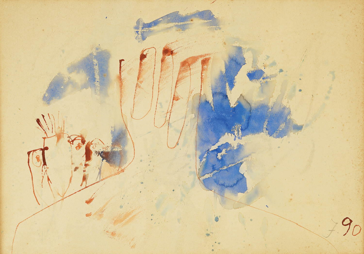 Signed with initials at the bottom right, in pencil, "I." and dated at the bottom right, in brown "(19)90"