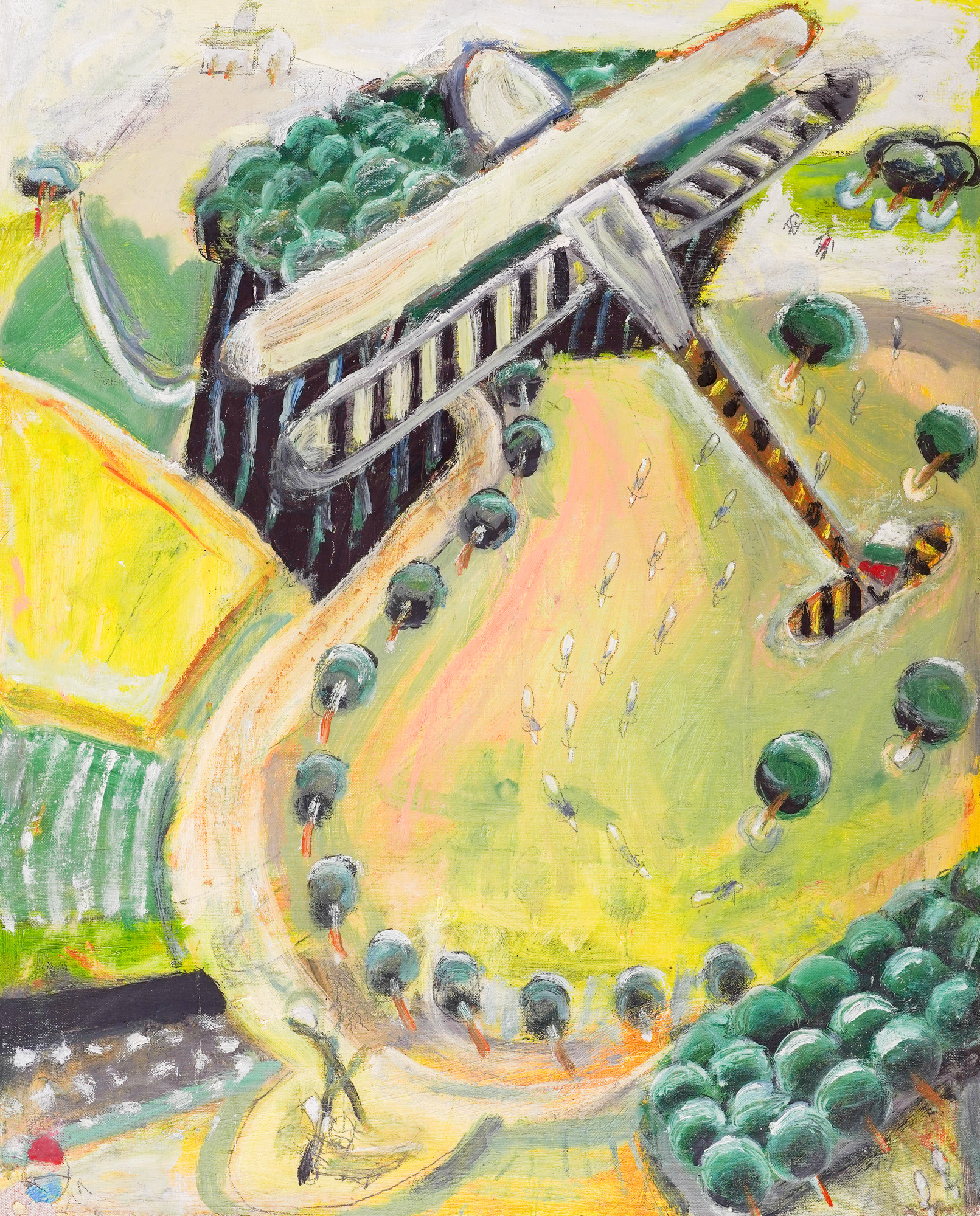 Oil paints and pencil on canvas