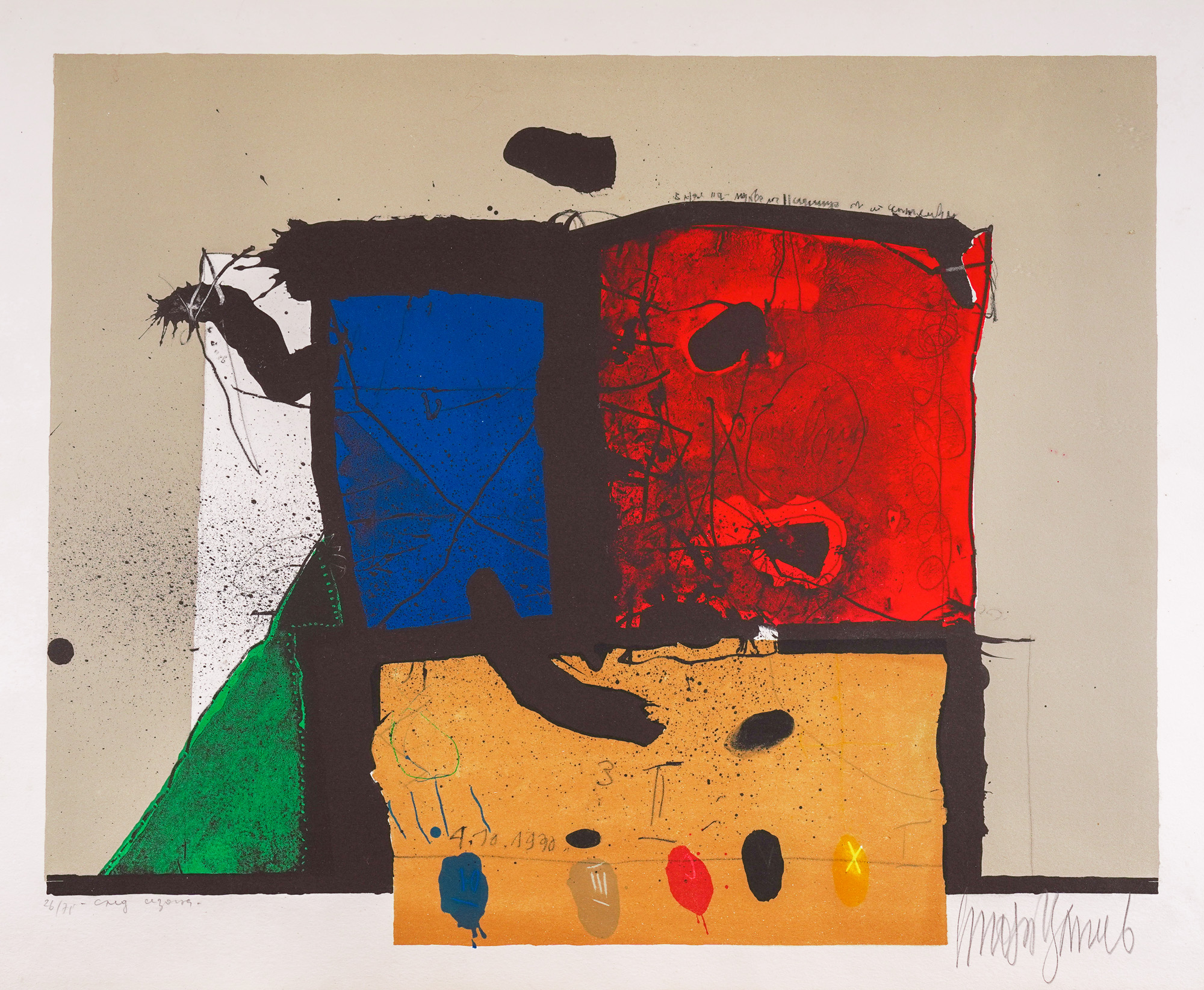 signed bottom right, in pencil, "Стоян Цанев"; dated centrally down, in pencil, "04.10.1990"; numbered and titled bottom left, in pencil, "26/75, след сезона"
