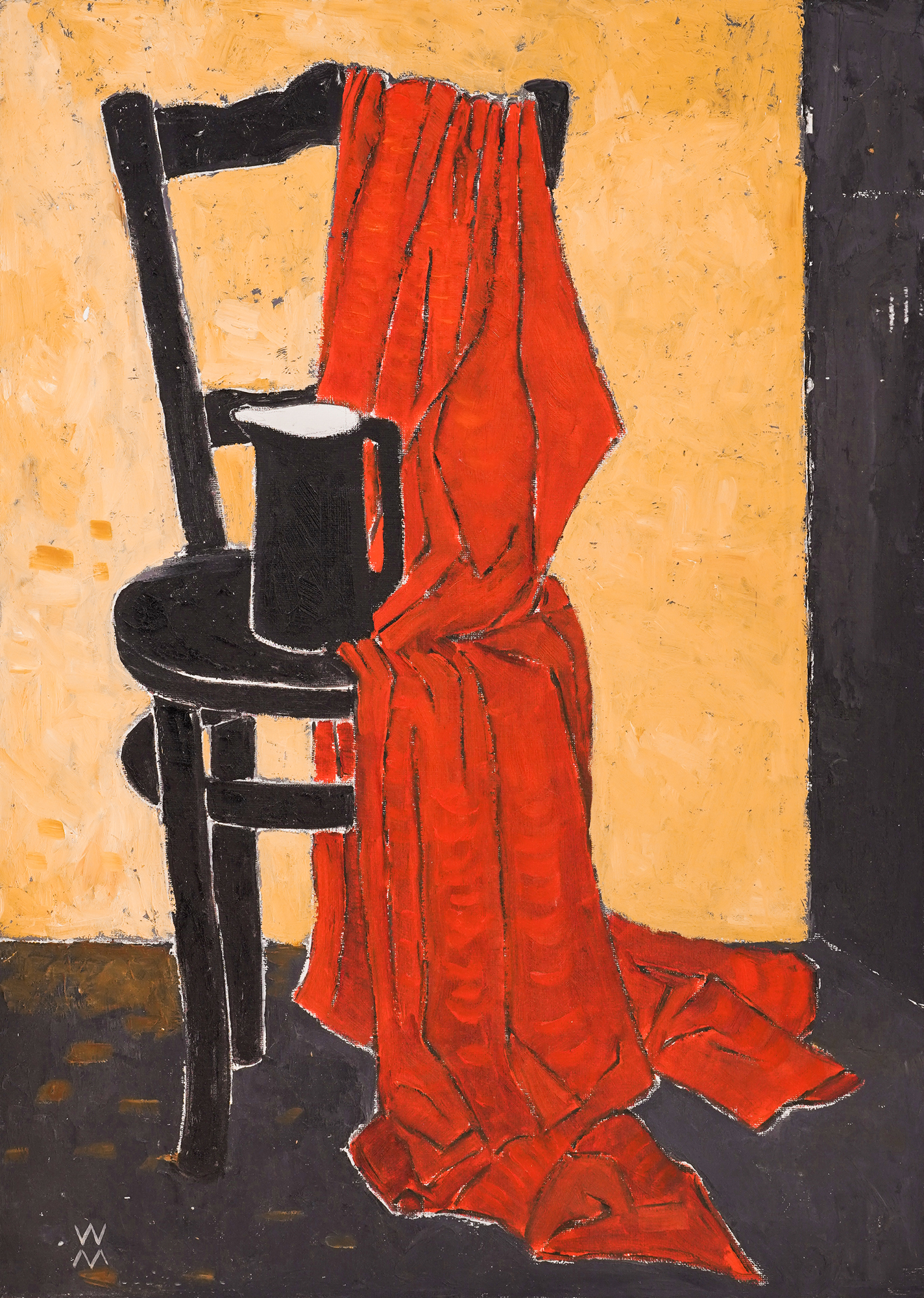 signed bottom left with monogram, in white, "WM"