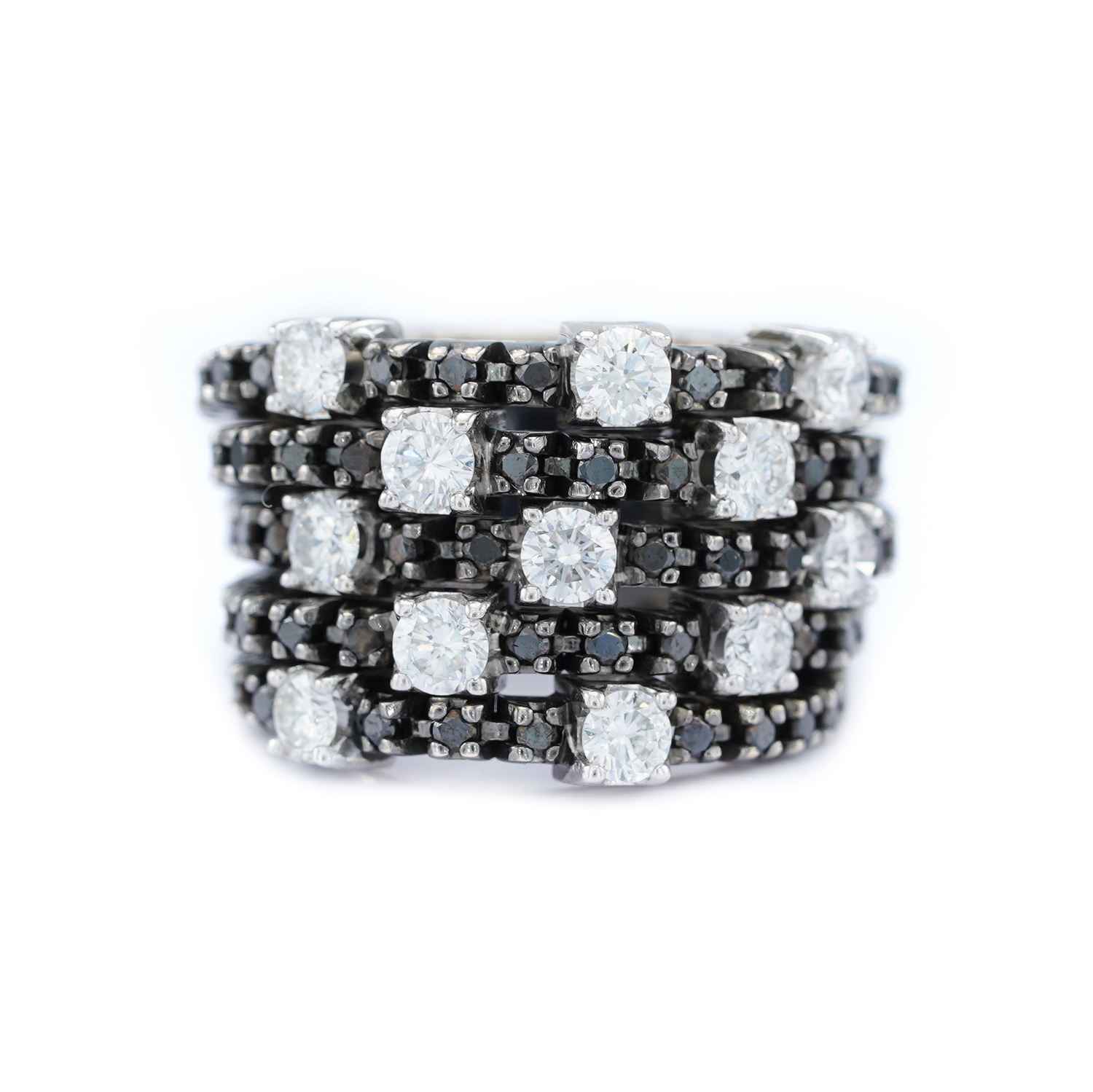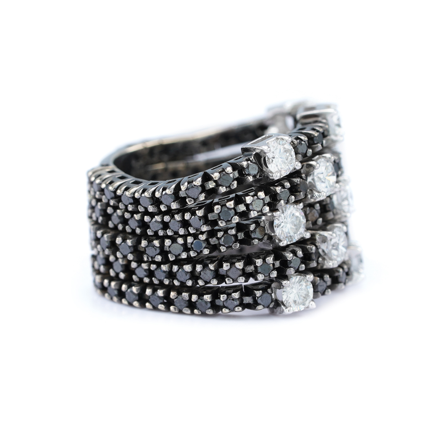 47. Cocktail ring of rhodium-plated gold, adorned with black and white diamonds