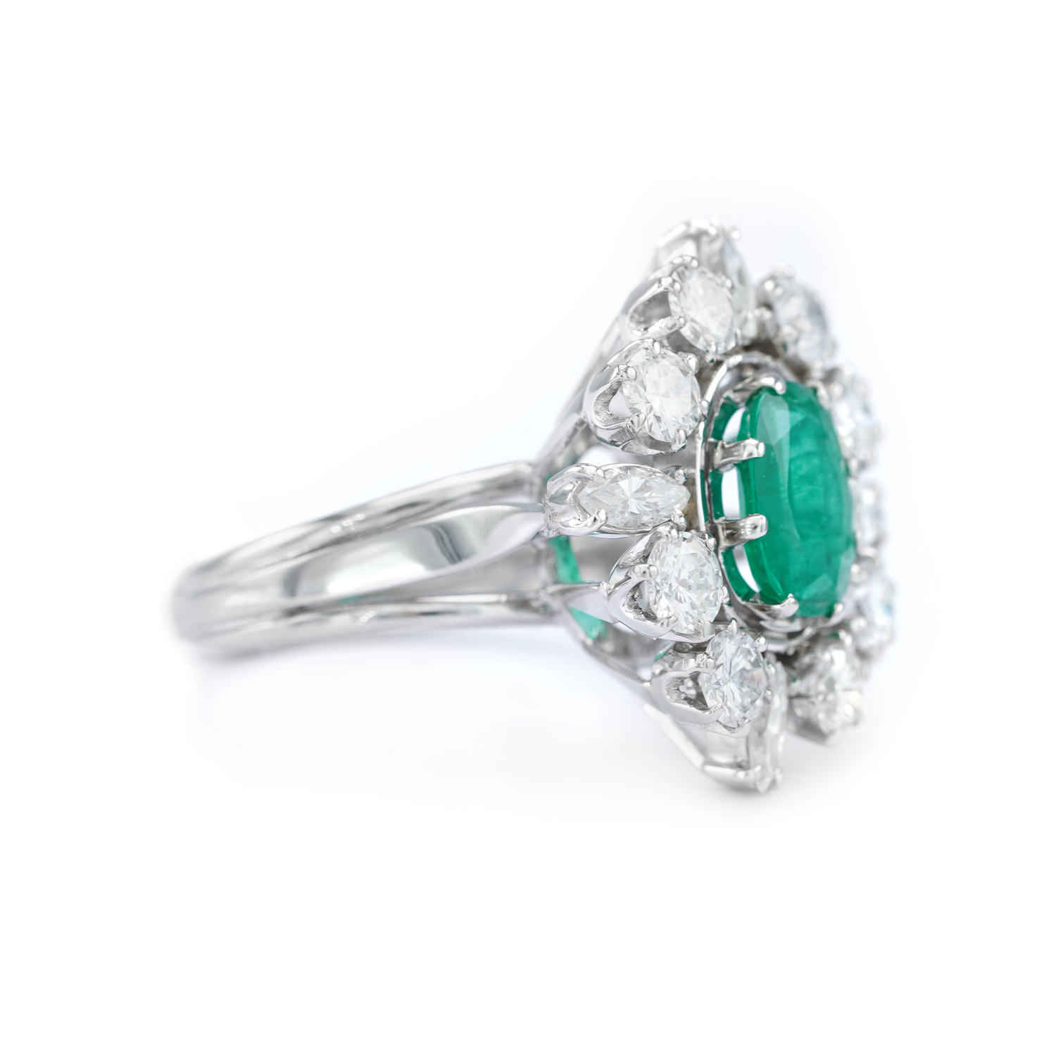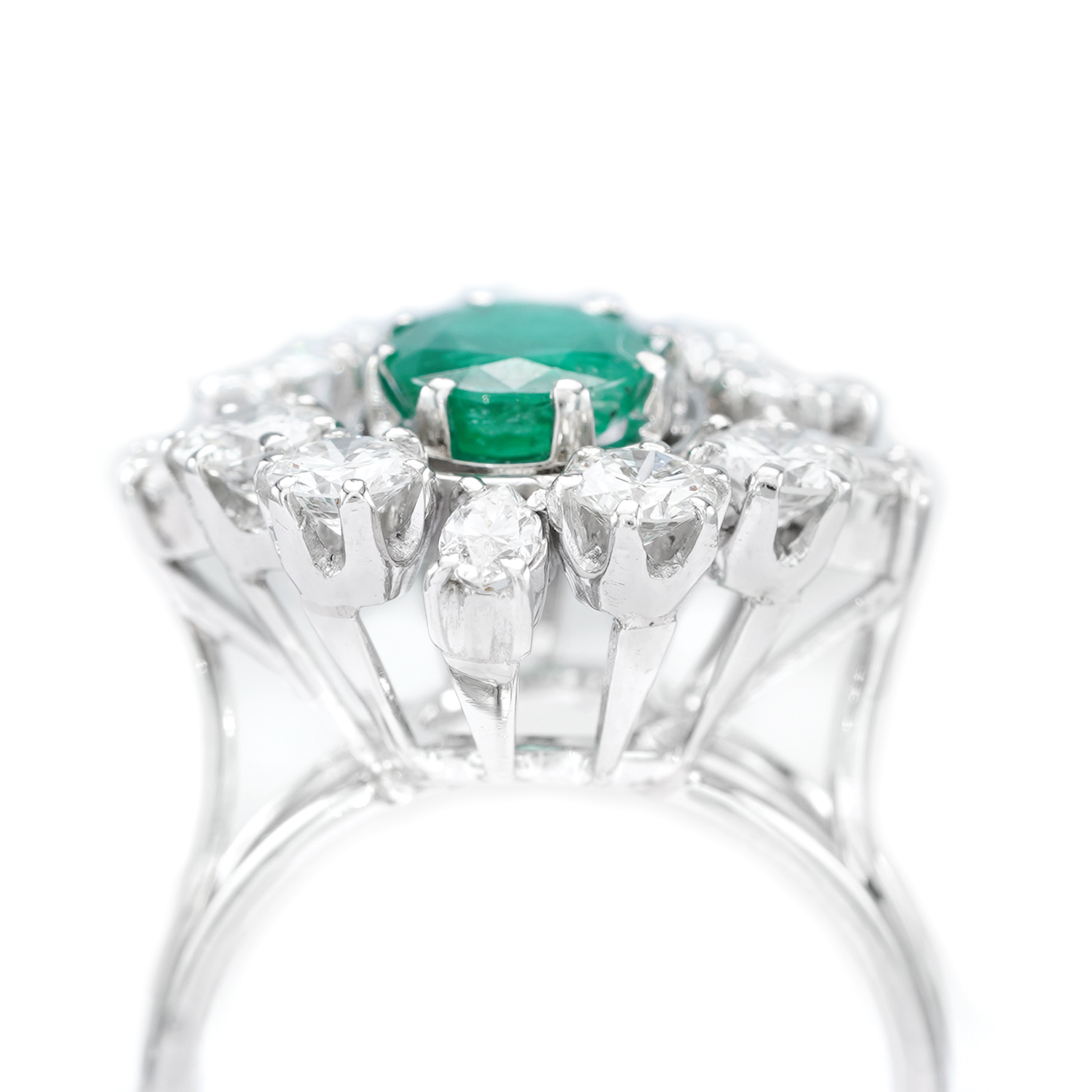 27. Platinum ring decorated with emerald encrusted with diamonds