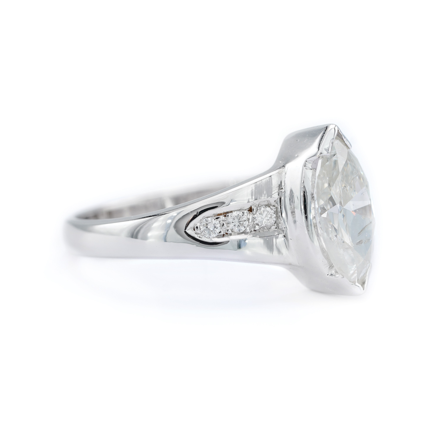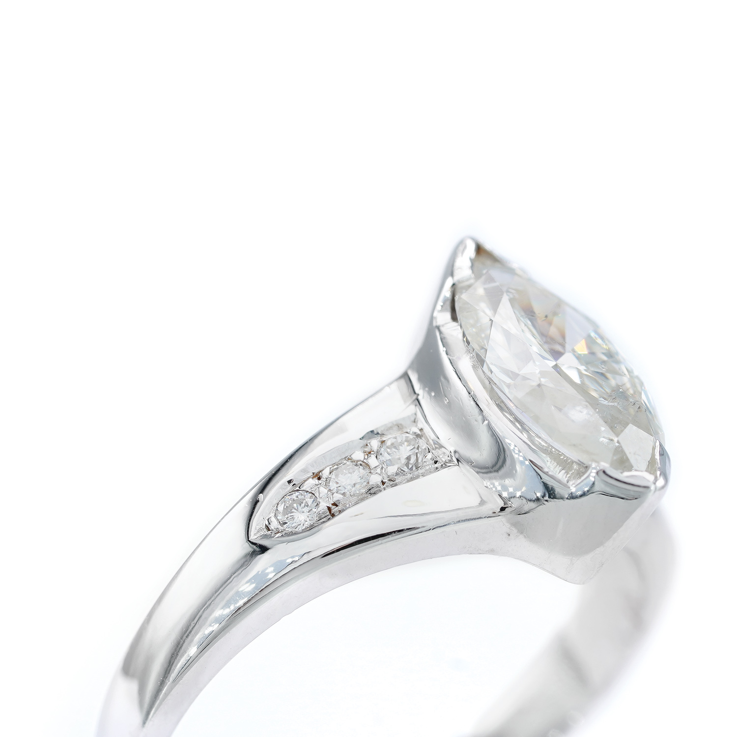 1 diamond, marquise cut, approx. 1.20 ct., color I-J, clarity I2; 6 diamonds, round brilliant cut, approx. 0.06 ct., color G-H, clarity VS1-VS2