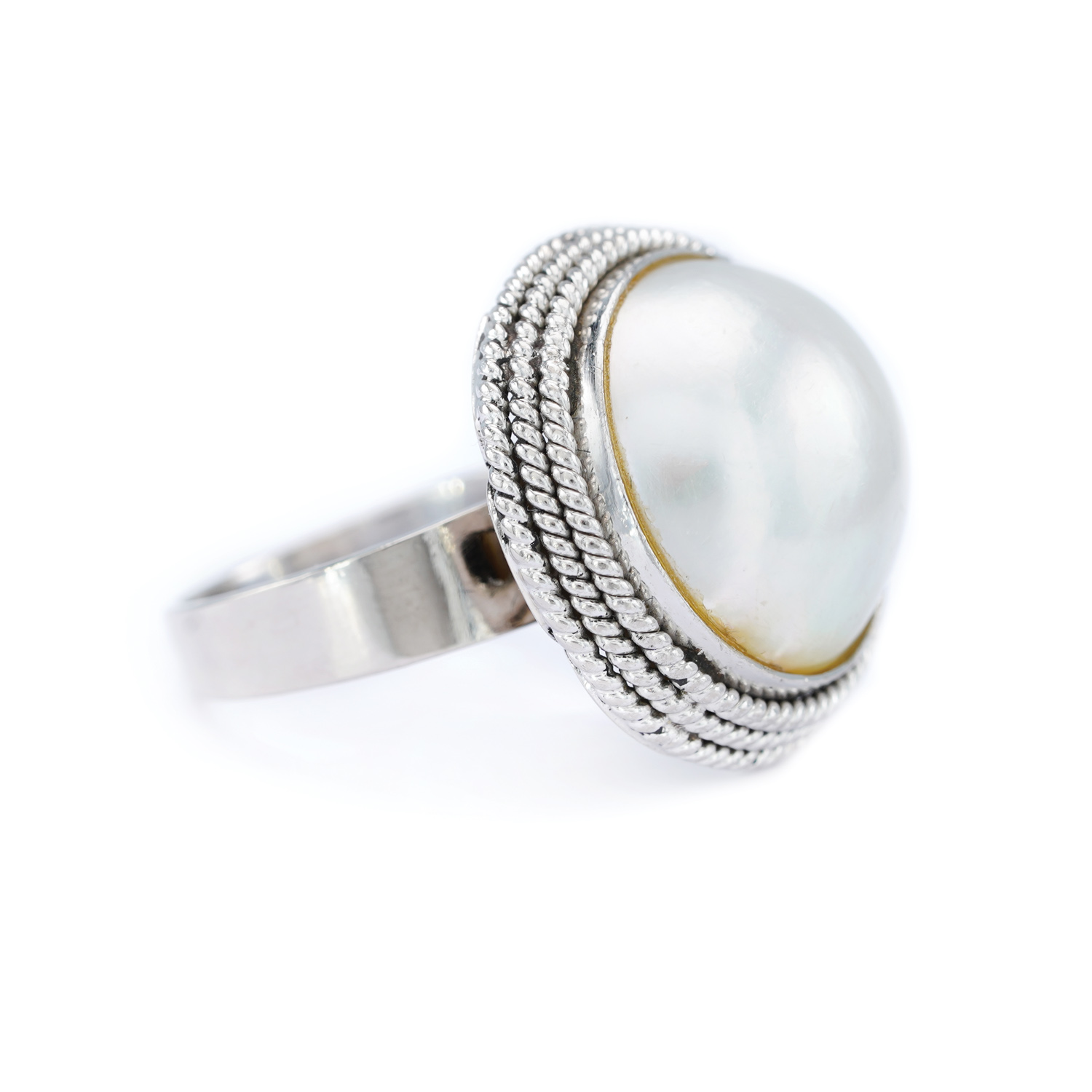 54. White Gold Ring, Decorated with Large Mabe Pearl