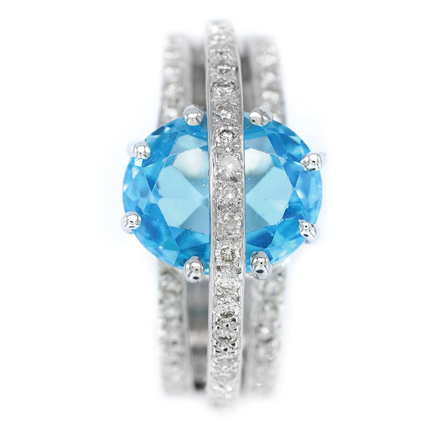 28. White Gold Ring, Decorated with Topaz and Diamonds
