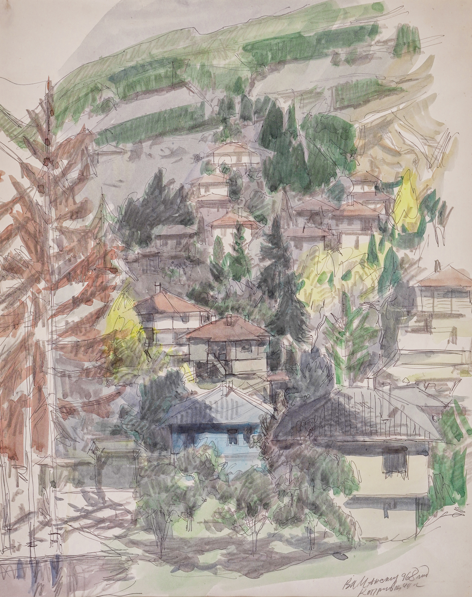 signed, dated and titled bottom right, in pencil, "„Вл. Мански, (1)968 год., Копривщица"