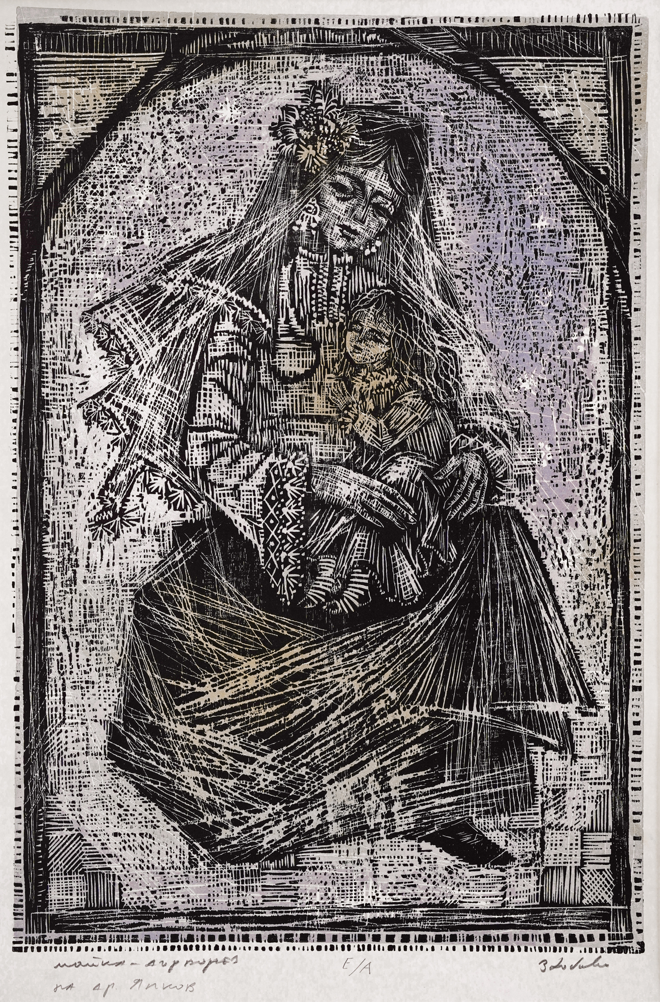 signed bottom right, in brown, "З. Дъбова"; titled, noted and dedicated bottom left, in pencil, "майка-дърворез, на др. Янков“