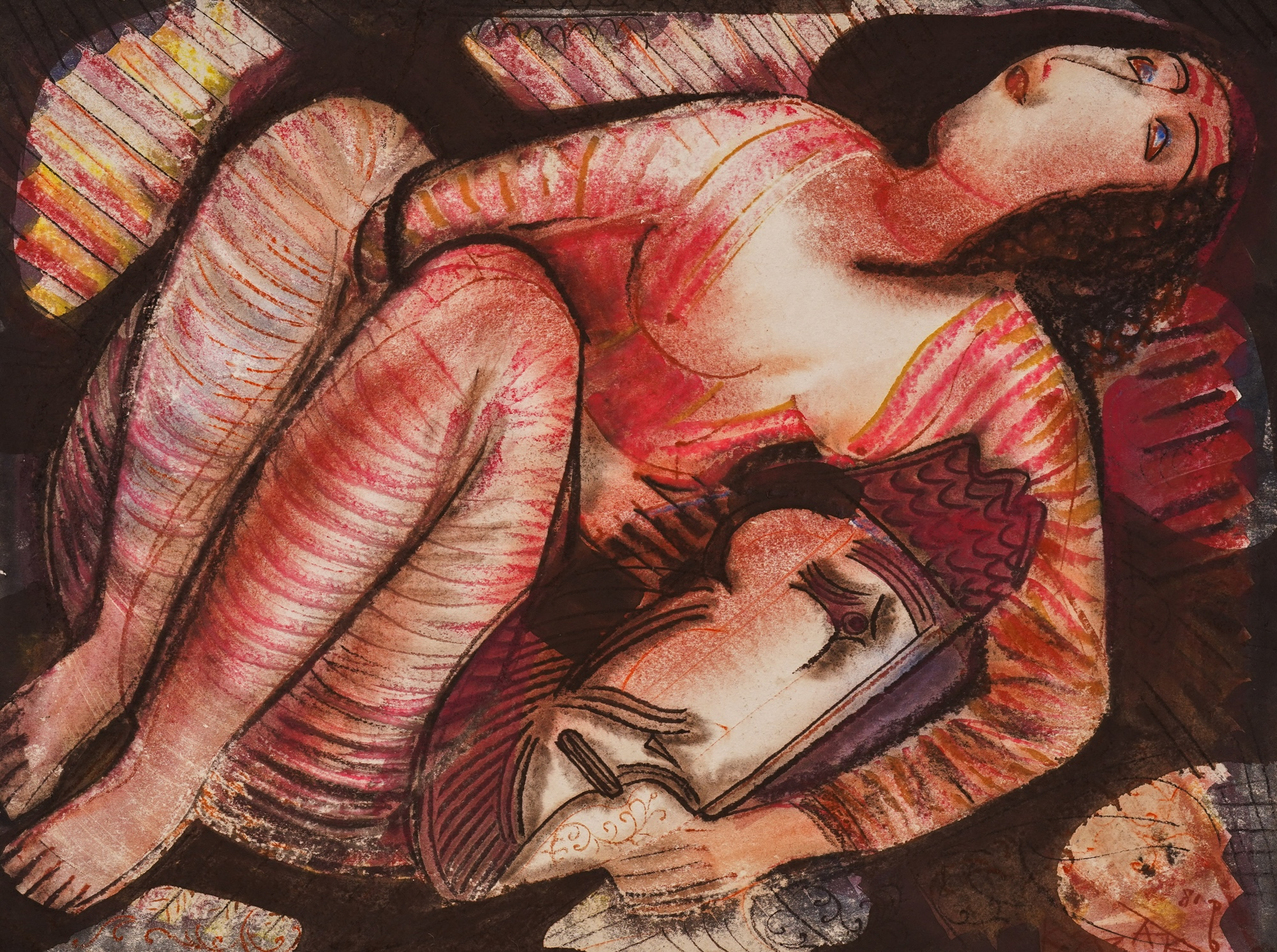 watercolor and pastel on paper