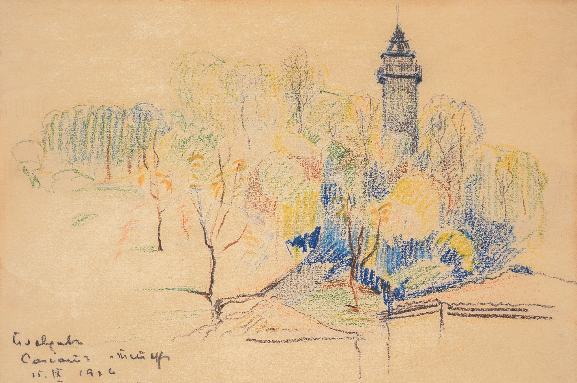 signed, dated, located and titled bottom left, in pencil, "Nic. Taneff, 15.IX.1926, Пловдив, Сахат“