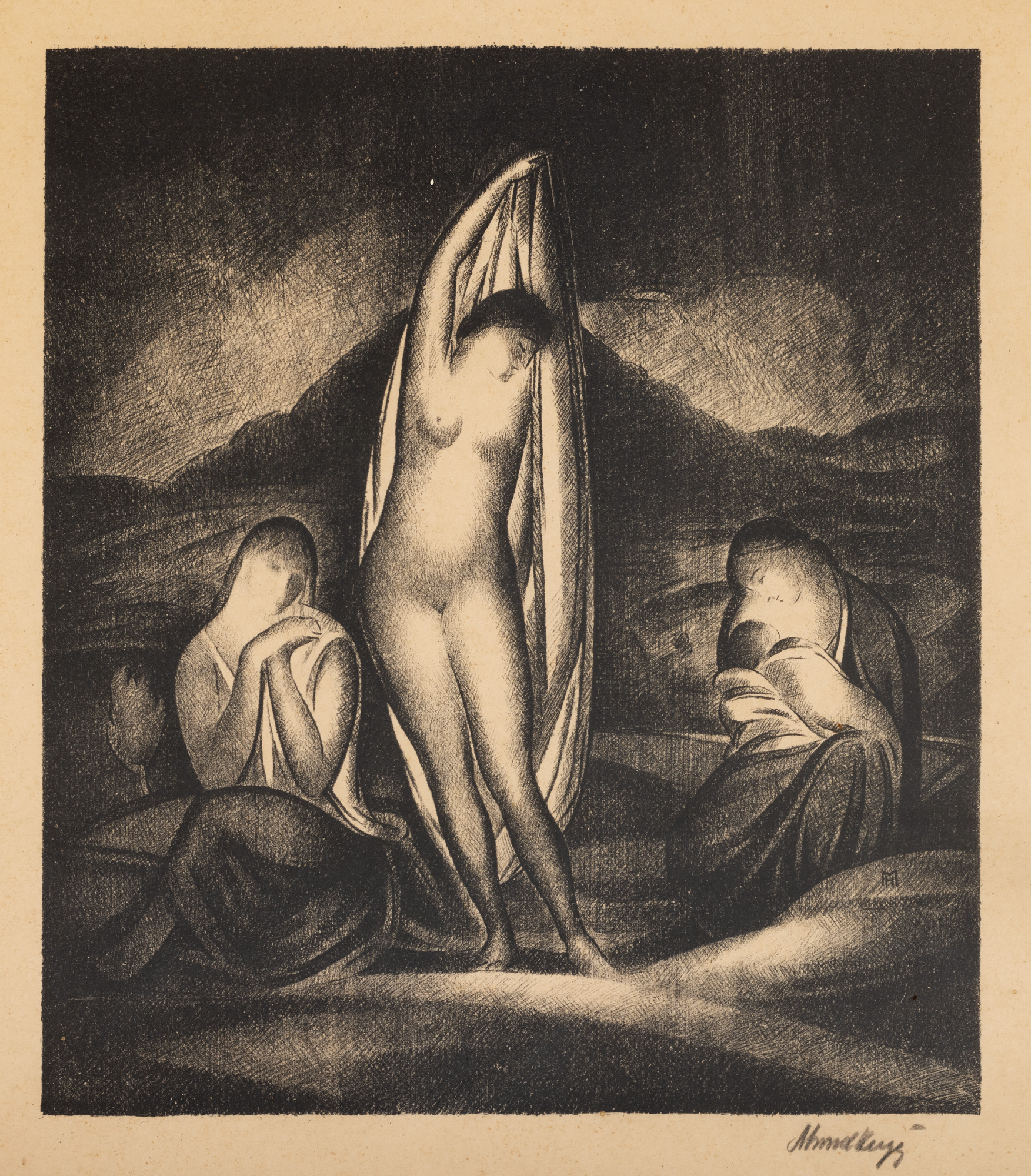 semnat dreapta jos, în creion, "Mund Hugo"