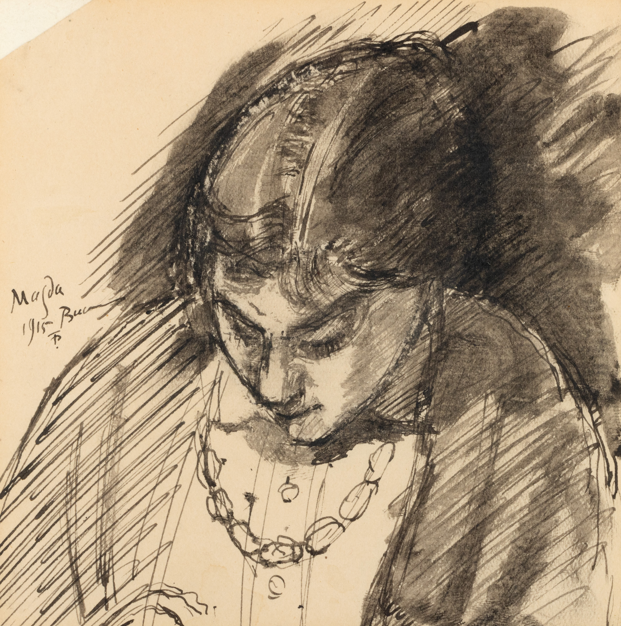 semnat, datat, intitulat și localizat, lateral stânga jos, în peniță, ”TP, Magda, 1915, Bucium”