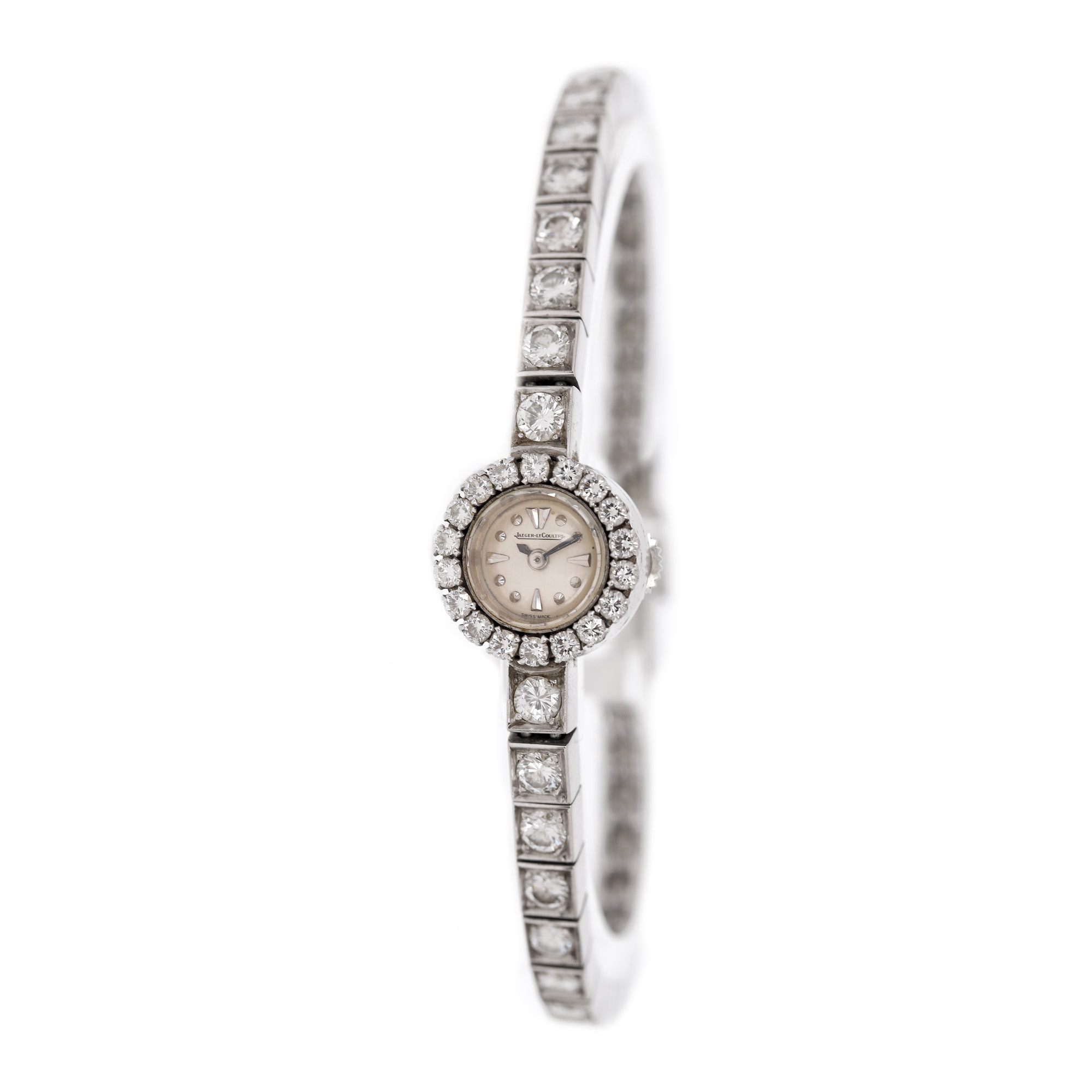 74. Ceas Jaeger LeCoutre din aur alb, cu 58 de diamante totalizând cca. 4.54 ct, de mână, de damă, ce a aparținut Zoiei Ceaușescu [Cca. 1975]