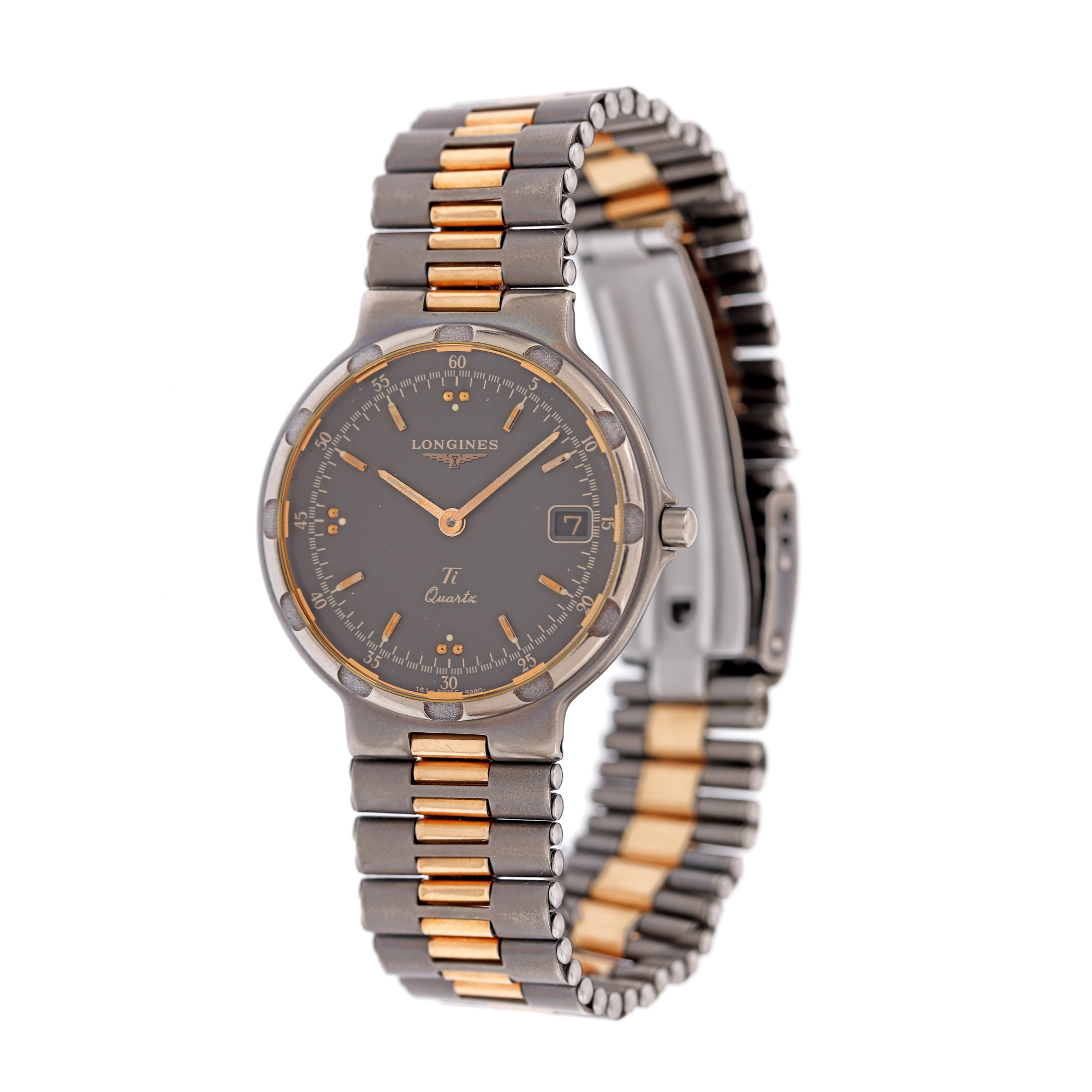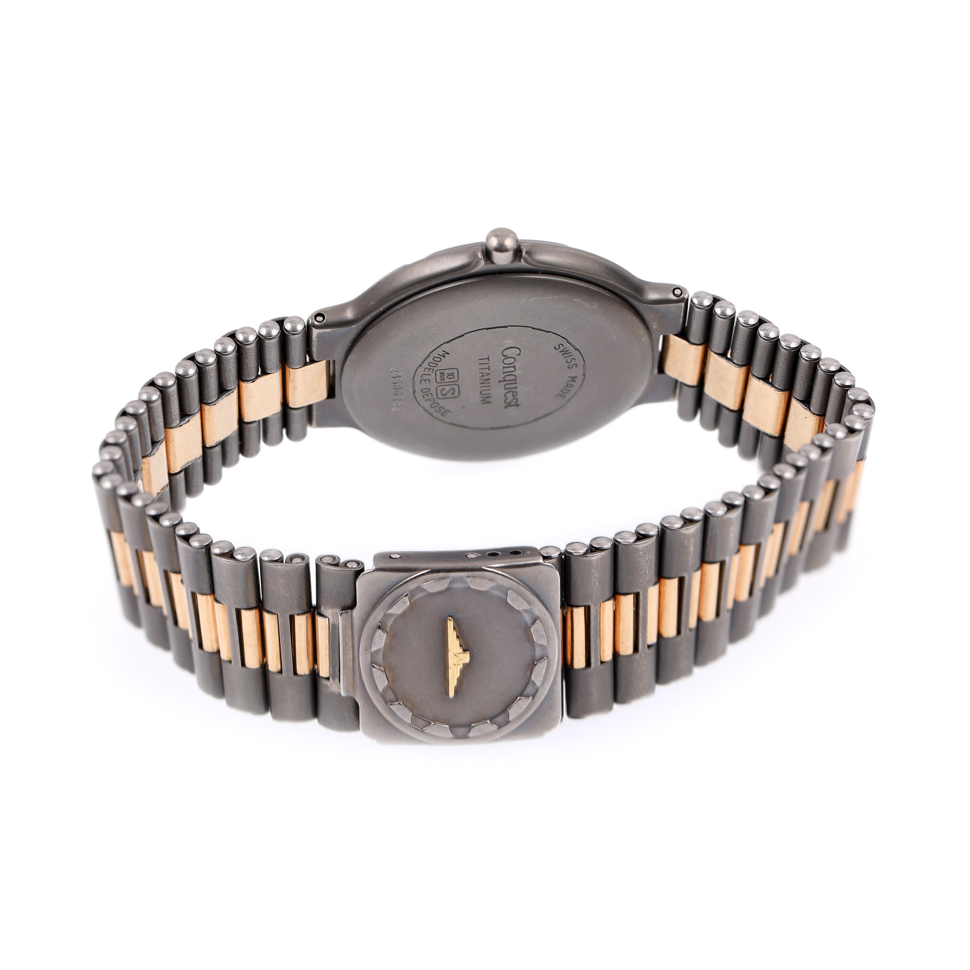 112. Ceas Longines Conquest, din titan, de mână, de damă, cu card de garanție și acte de proveniență [Cca. 1985]