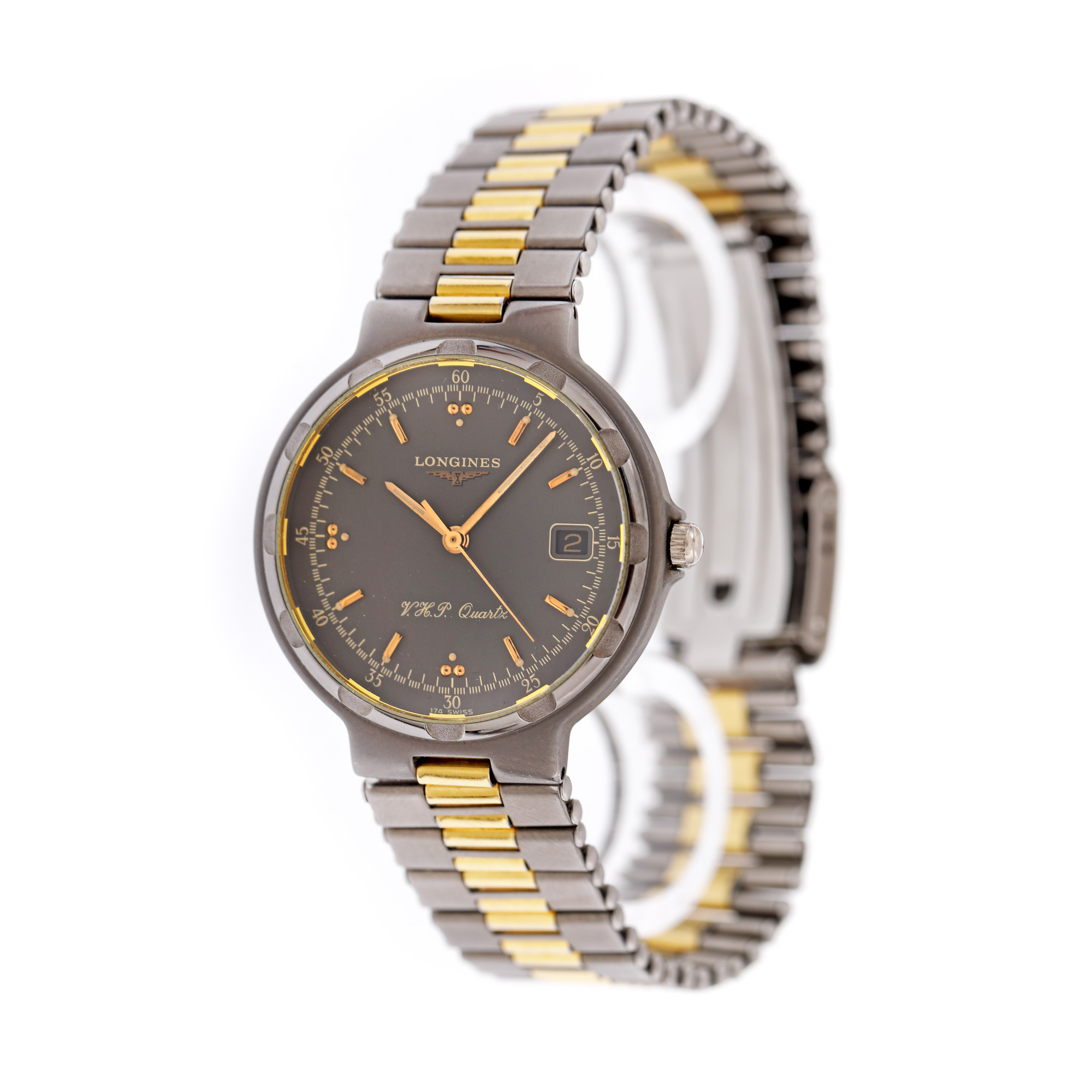 114. Ceas Longines Conquest, din titan, de mână, de damă [Cca. 1988]