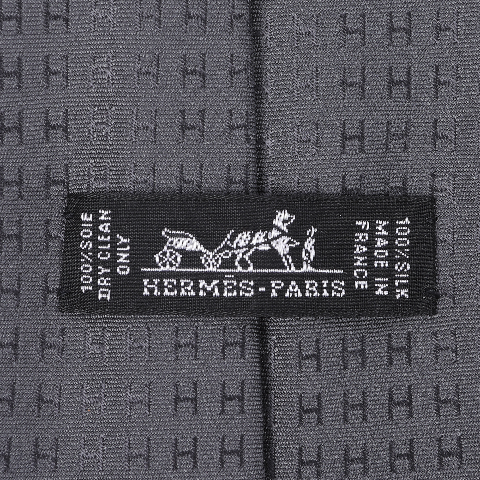 135. Cravată Hermès Faconnee H din mătase, culoare Noir, însoțită de cutia originală