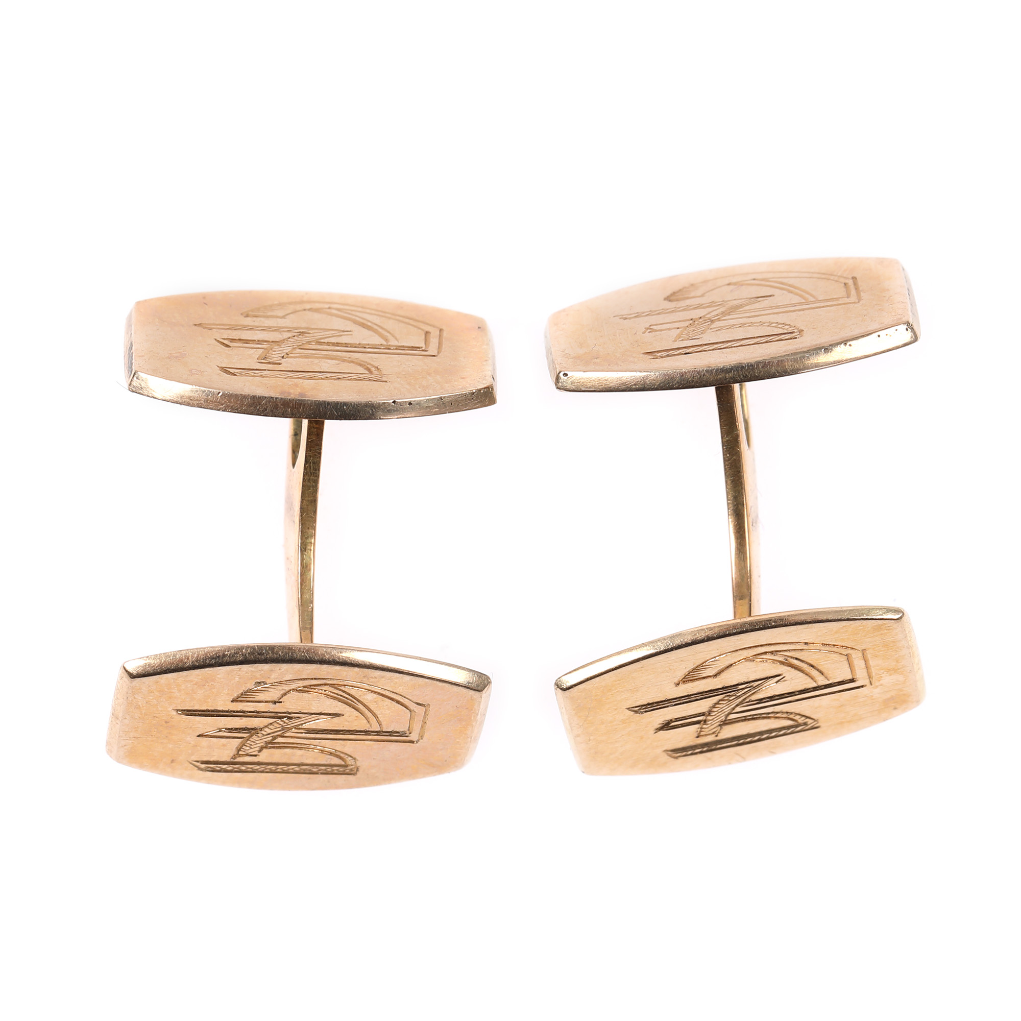 132. Pereche de butoni din aur, decorată cu monogramă AM