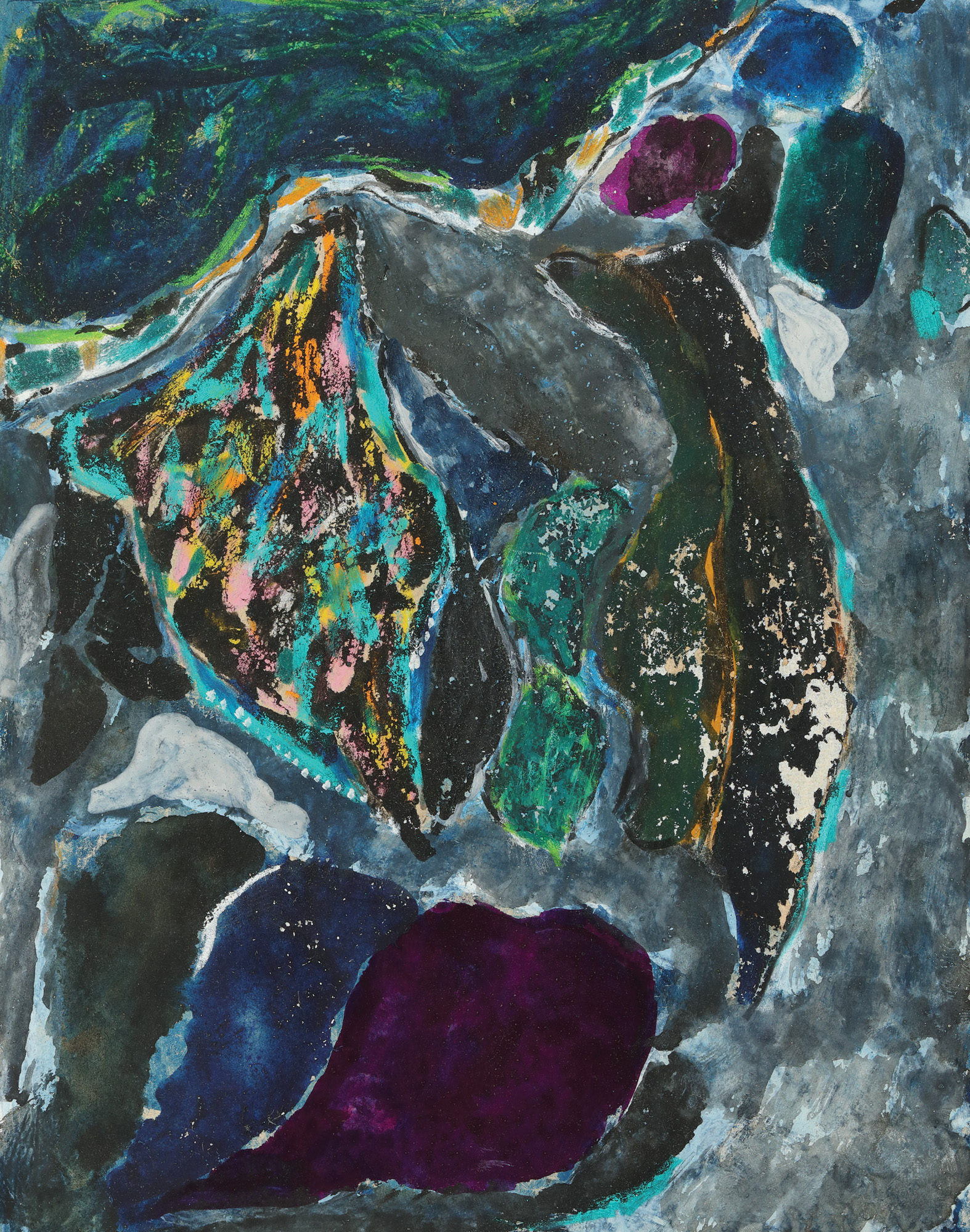 guașă pe hârtie lipită pe carton