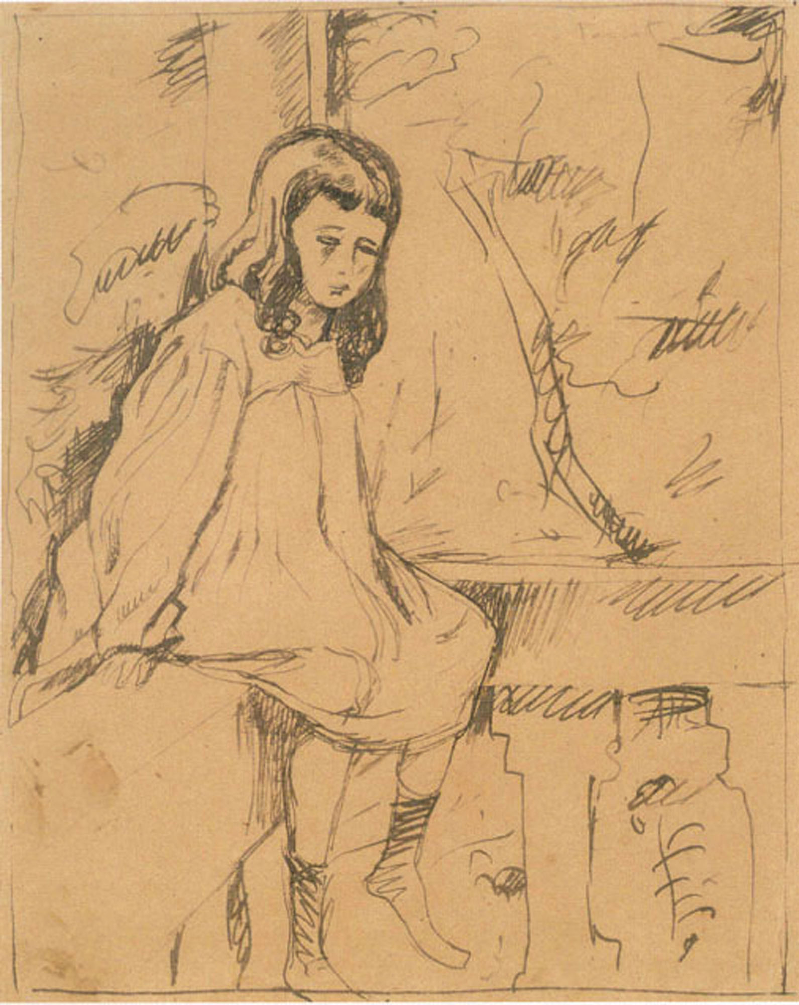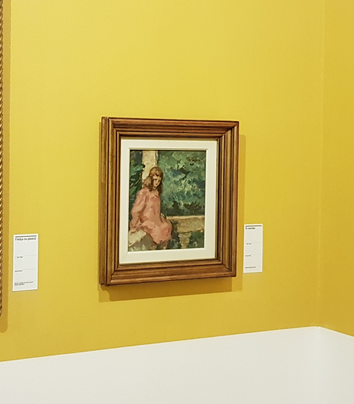 Opera a participat la Expoziția „Capodopere de Nicolae Tonitza din colecții particulare”, Noaptea Muzeelor 2015, Galeriile Artmark. Opera a participat la Expoziția "Tonitza. Imagini ale copilăriei", Muzeul Județean Mureș, 2019, și este reprodusă în catalogul expoziției la pag. 237. Opera a participat la Expoziția „Tonitza și geniul copilăriei”, Artsafari 2019, și este reprodusă în catalogul expoziției la p. 214, sub titlul „În cerdac”. În cadrul Bibliotecii Academiei Române se păstrează un studiu preliminar al operei, realizat în tuș pe hârtie, sub titlul „Fetiță” (20,9 x 17 cm), nedatat [1921-1924], reprodus în catalogul Expoziției „Tonitza. Imagini ale copilăriei”, Muzeul Județean Mureș, 2019.
