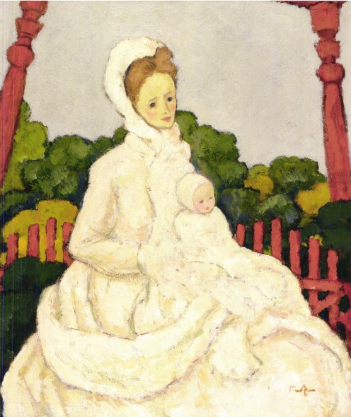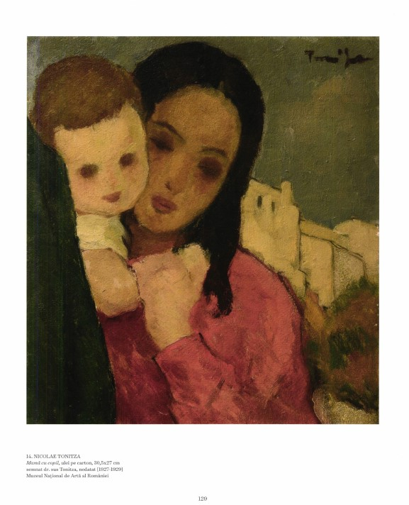 Deceniul al treilea al secolului trecut și stabilirea temporară la Vălenii de Munte avea să contribuie considerabil la apropierea lui Nicolae Tonitza de familia sa. Vom identifica în acest moment geneza seriei de lucrări dedicate maternității. Traiul cotidian într-o gospodărie în care se perindau de colo-colo câte cinci-șase copii nu avea cum să treacă neobservat în clasorul surselor de inspirație ale artistului. Vom regăsi așadar maternitatea redată sub diverse forme, iar reprezentarea femeii și a copilului va deveni un subiect predilect al creației lui Nicolae Tonitza. De la mamele care își țin nou-născuții la piept și până la ipostazele de iubire profundă pe care le relevă îmbrățișările strânse dintre mamă și copil, maternitatea a fost adesea interpretată drept simbol în artă. Cele mai vechi cartografieri ale temei datează de secole, iar printre primele reprezentări identificate se numără Fecioara Maria cu pruncul în catacombele Priscillei din Roma. Regăsim subiectul reluat de artiști consacrați la nivel mondial precum Michelangelo, Renoir, Dorothea Lange, Paul Cézanne, Gustav Klimt, Mary Cassatt și nu numai. Însă de la ”Madona cu pruncul” și până la ”Lăutul” lui Luchian, subiectul a evoluat și a luat diverse forme și semnificații. Nicolae Tonitza a reluat tema operei de față în trei lucrări distincte, care au fost ulterior incluse în colecțiile reputate ale vremii. Expoziția retrospectivă organizată în cadrul Muzeului de Artă din București în perioada ianuarie-martie 1964 aducea în fața publicului atât opera de față, cât și o altă variantă a acesteia, de dimensiuni mult mai reduse, inclusă apoi chiar în colecția muzeului. Lucrarea este, așadar, reprodusă în catalogul dedicat expoziției, alături de cealaltă variantă, fapt care ne permite să observăm diferențele de perspectivă, încadrare, execuție și cromatică propuse de către artist. Este redată aceeași pereche, mamă și copil, printr-un plan detaliu, umbrit într-o oarecare măsură de silueta unui al treilea personaj. Subiectul este reprezentat așadar de mama care își ține copilul în brațe. Este evidențiată apropierea celor două chipuri, într-un gest de tandrețe; și strângerea mâinii micuțului, printr-un gest de grijă profundă. Afecțiunea maternă și candoarea copilăriei răzbat prin toți porii lucrării, iar contrastele care alcătuiesc opera reliefează importanța subiectului atât în economia creației artistului, cât și în iconografia universală.