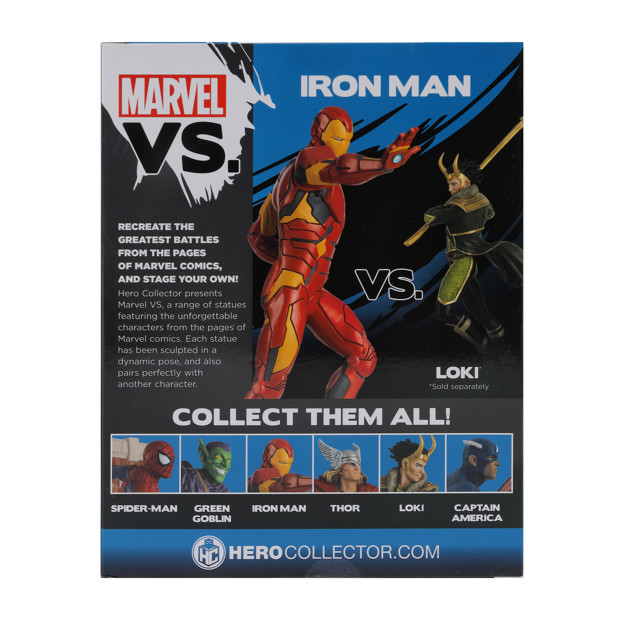 Hero Collector a lansat seria de figurine MARVEL VS, inspirate din universul Marvel, aducând în atenția pasionaților cele mai acerbe confruntări și rivalități, de la Spider-Man și Green Goblin la Captain America și Iron Man. Geniu inventiv, dar și playboy miliardar, Tony Stark și-a construit un costum blindat, plin de energie, cu care și-a propus să salveze viețile celor aflați în pericol. Figurina de colecție Iron Man vs. prezintă o versiune modernă și elegantă a costumului Iron Man, cu fum și flăcări care ies din cizmele sale de rachetă, catapultându-l pe Tony Stark sus în cer în timp ce se pregătește pentru un atac. Iron Man a debutat în Tales of Suspense numărul 39 (1963), într-un costum greoi ,din metal blindat gri. DE-a lungul timpului, costumele sale au cunoscut modificări, devenind tot mai performante. Colectează toate cele 6 figurine MARVEL VS și fii pregătit de bătălie!