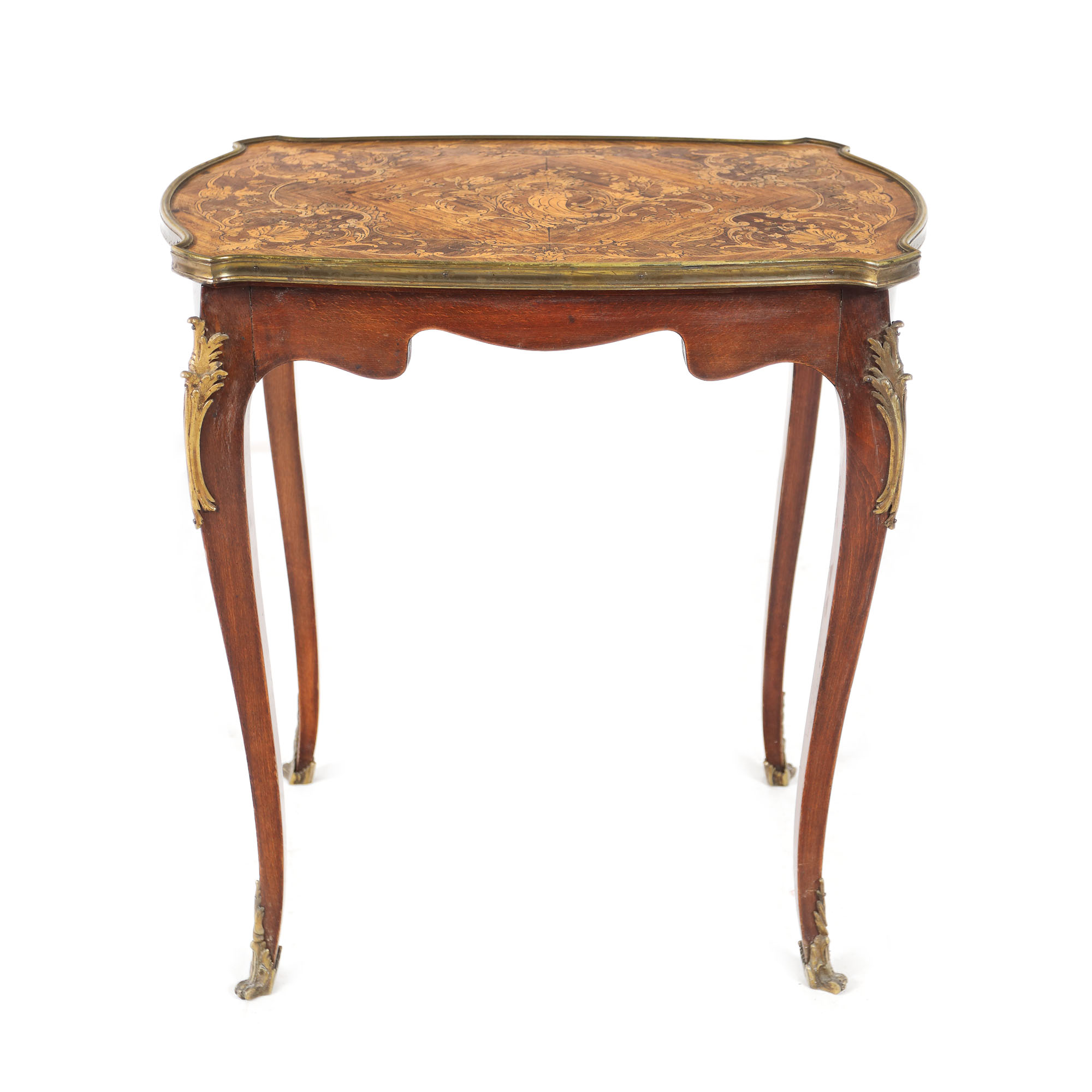 50. Masă pentru salon, realizată în manieră Louis XV, marchetată cu motive Rocaille, cca. 1900, provine din colecția actriței Stela Popescu