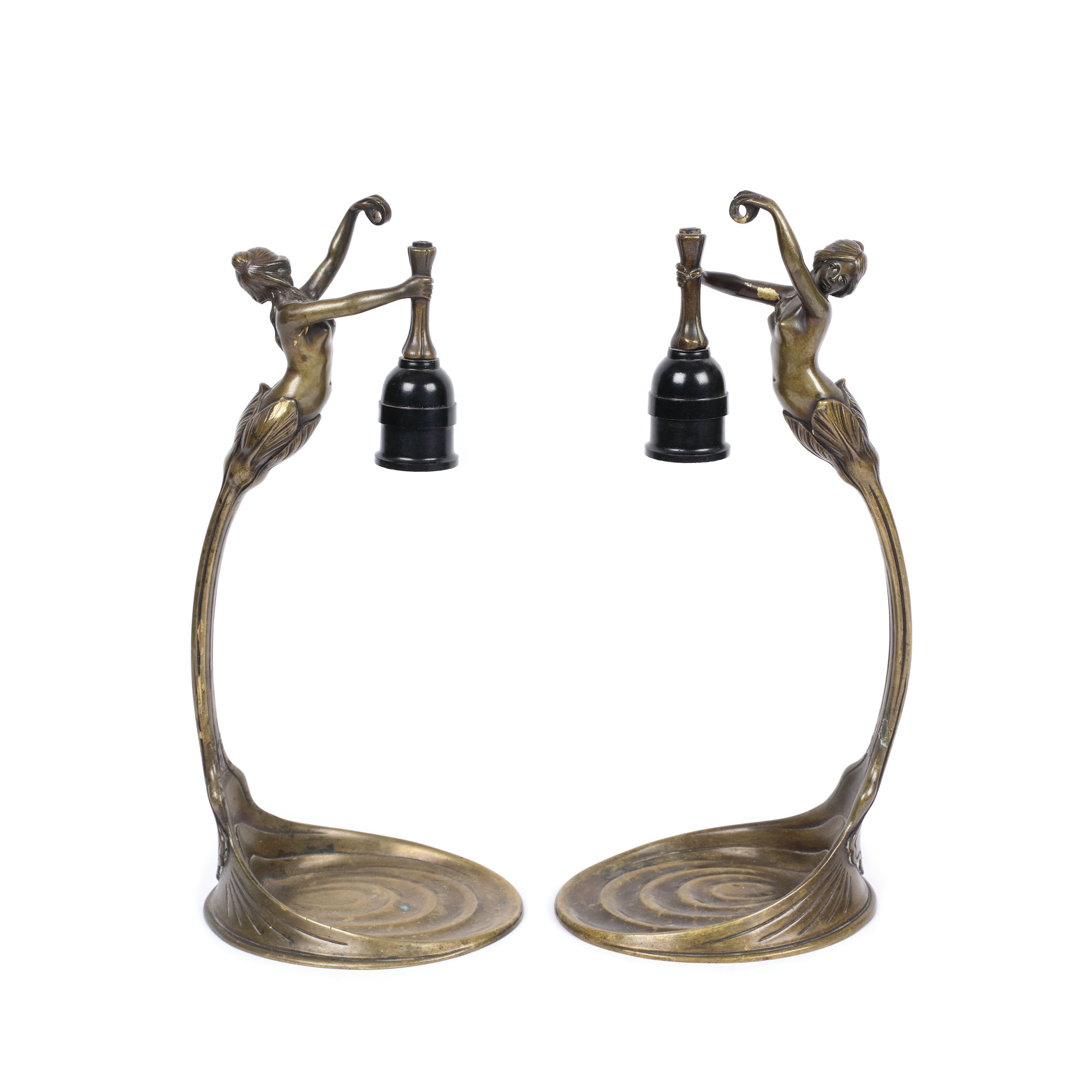 53. Pereche de lămpi Art-Nouveau, cu siluete de nimfe, provine din colecția actriței Stela Popescu