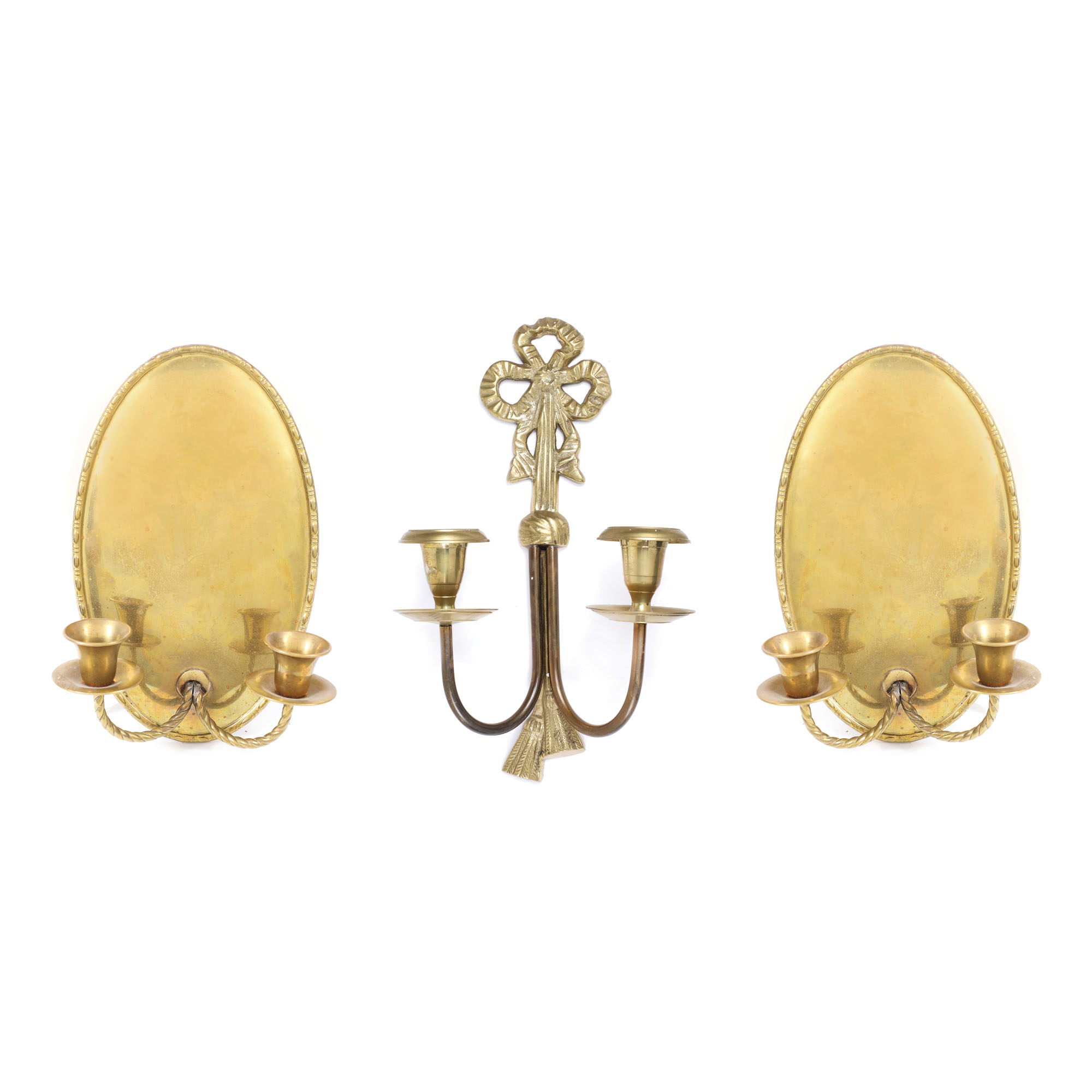 51. Set format din trei aplice de inspirație Louis XVI, din alamă, provine din colecția actriței Stela Popescu [Sec. XX]